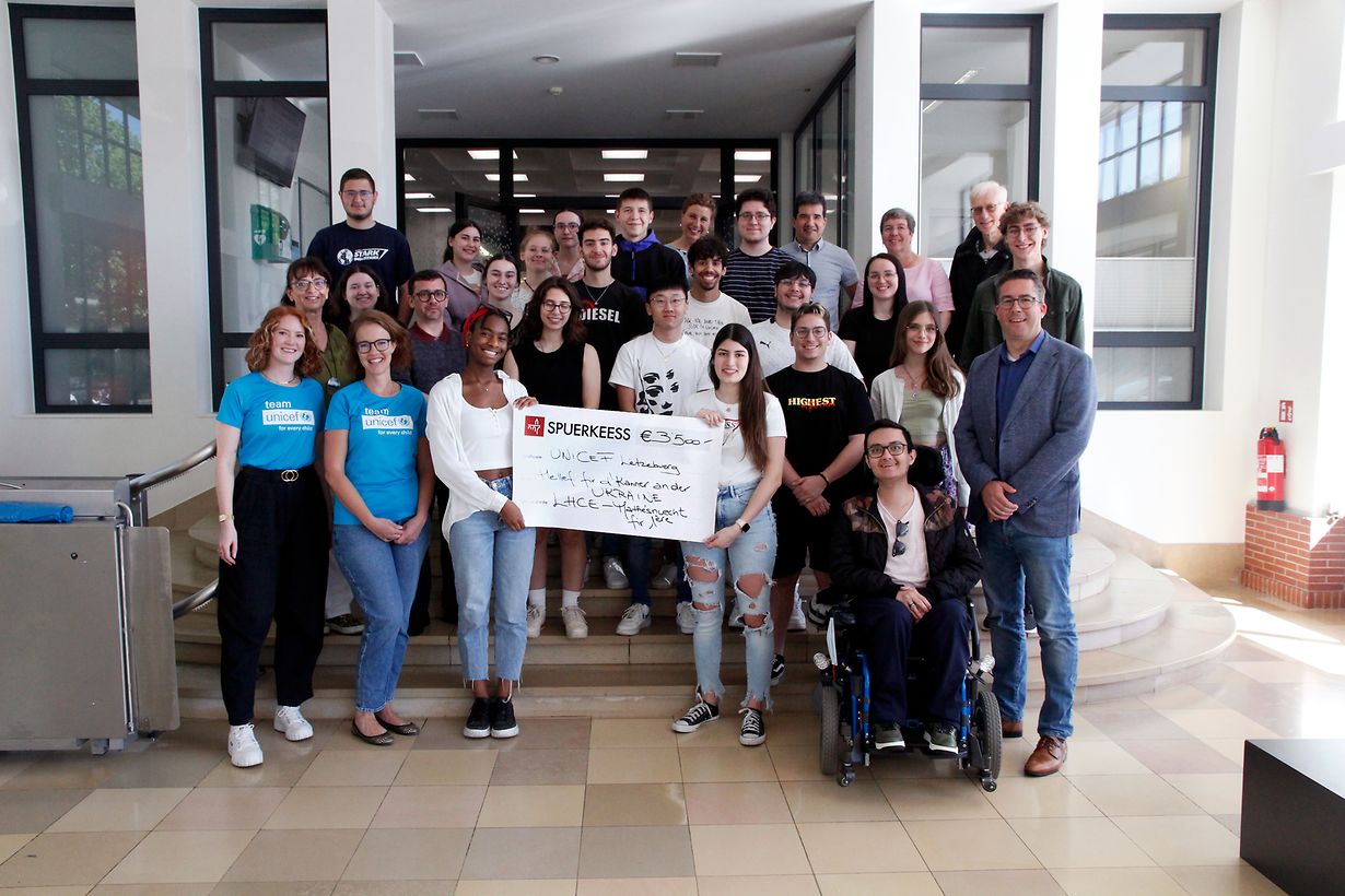 Munis d’un certificat leur permettant de montrer l’effort réalisé, ils sont allés collecter des dons auprès de leurs connaissances. La collecte complétée par des dons substantiels de la Direction et du Comité des enseignants a permis de faire parvenir 3.500€ qui ont fait l’objet d’une remise de chèque ce vendredi 13 mai dans le hall du lycée. Au nom de UNICEF Mmes Martine Karier et Mandy Beck, elles-mêmes anciennes élèves du LHCE, ont brièvement exposé les missions de l’agence et ont remercié les élèves ainsi que la Direction et le Comité des enseignants pour leur soutien financier.