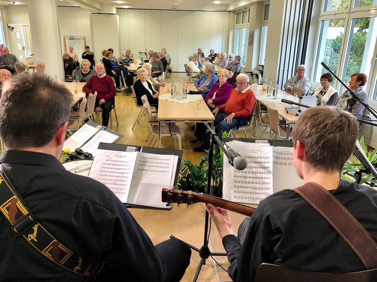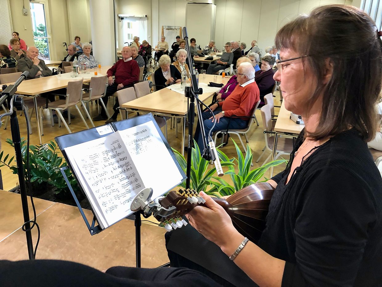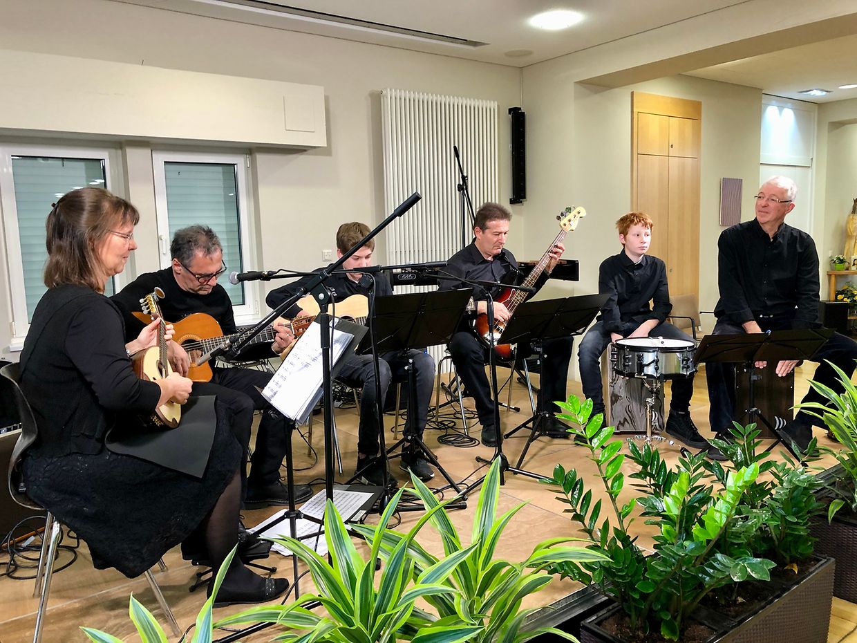 Das Musikensemble Divertimento gastierte einmal mehr im CIPA Esch "op der Leier" um den Anwohner des Heimes einen gemütlichen musikalischen Nachmittag zu bereiten. Unter der Leitung von Isabelle Merlevede spielten sich die Musiker mit bestbekannten Melodien in die Herzen der zahlreichen Leute, die sehr aufmerksam und sehr interessiert die gelungenen Darbietungen verfolgten. Oft wurde mitgesungen oder sogar der Takt mitgeschlagen. David Di Bartolo, einer der jüngsten im Ensemble, erntete mit seiner Gesangseinlage von "Love yourself" sehr viel Applaus. Genauso erging es Ben Wagner mit seinem attraktiven Marimba-Spiel bei "Marry You", "Mamma Mia" und "The Rose". Mit dem Weltsong "Hallelujah" von Leonard Cohen liess Enrico Lunghi alle Herzen schneller schlagen. Die Basseinlagen auf der E-Gitarre von Vincent Di Bartolo, sowie das Cajonspiel von Jeannot Clement, rundeten das Ganze optimal ab. Nicht zu vergessen die perfekt vorgetragenen Mandolineinlagen der Dirigentin Isabelle Merlevede, die auch für alle hörenswerten Arrangements verantwortlich zeichnet und die Garant waren für ein harmonisches und exquisites Konzert.