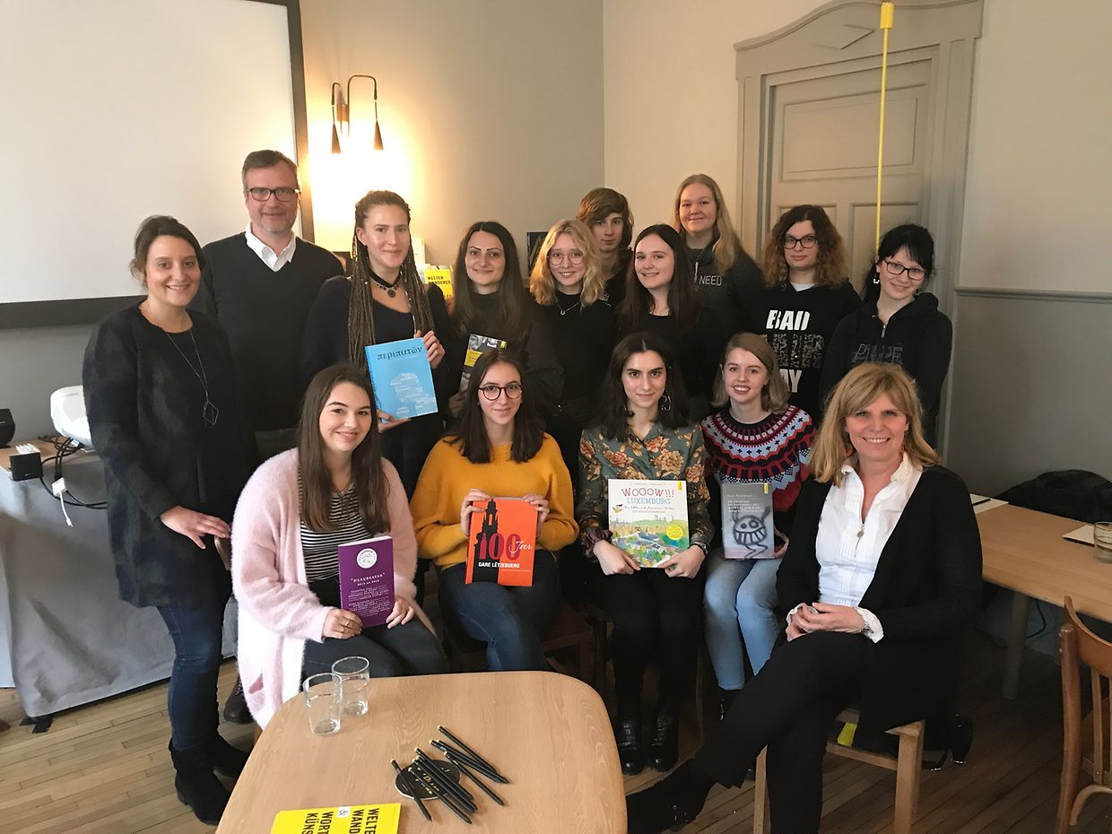 Überrascht hat die Schüler vor allem, dass die verschiedensten Disziplinen zusammenkommen müssen, um ein Produkt zu verkaufen. Interessant war, dass die unterschiedlichsten Berufsprofile gemeinsam wirken müssen, damit ein neues Buch für den Markt “geboren” werden kann. Insgesamt empfand die Lerngruppe den Besuch bei “Editions Guy Binsfeld” als sehr interessant und lehrreich.