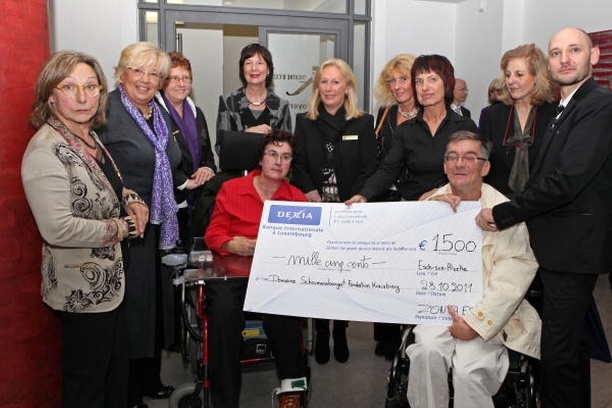 So überreichte die Präsidentin zum Abschluss der Festsitzung einen Scheck von 1 500 Euro an Alain Sindt, Verantwortlicher des „Domaine Schoumansbongert“, einem Behindertenheim der Stiftung „Kraïzbierg“. (LuWo)