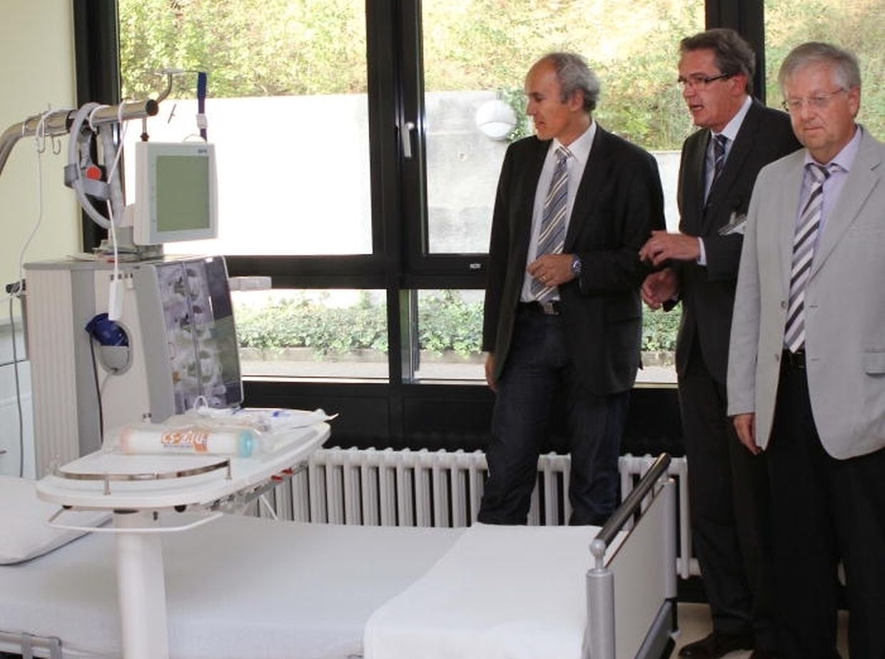 So zum Beispiel die Dialysestation, die nun von zehn auf zwölf Behandlungsposten vergrößert wurde. Hatte das Krankenhaus im Jahr 2004 noch 30 chronisch kranke Hämodialyse-Patienten mit etwa 4 700 Dialysen im Jahr, so sind diese Zahlen seither auf 45 Patienten mit 7 000 Dialysen im vergangenen Jahr gestiegen. Das ist eine Zunahme von 51 Prozent. Zudem werden rund 150 Dialysen auf der Intensivstation geleistet. Das Dialyseteam setzt sich momentan aus drei Nephrologen und 18 Pflegern zusammen.