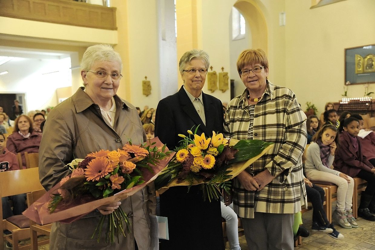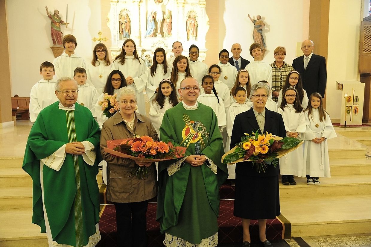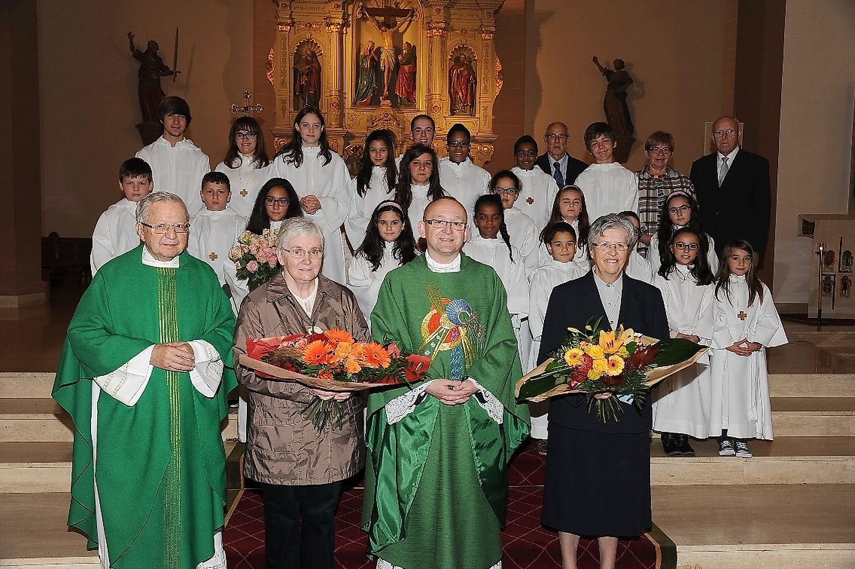 In der dichtbesetzten und festlich geschmückten Pfarrkirche von Ettelbrück hatten sich am vergangenen Sonntag zahlreiche Gläubige eingefunden um im Rahmen einer Abschieds- und Danksagungsmesse, Abschied von den beiden Schwestern Marie- Jeanne Heischbourg und Virginie Schlesser zu nehmen. Der feierliche Gottesdienst wurde gesanglich von der „ Chorale Ste. Cécile Ettelbruck“ unter der Leitung von Lé Lassans und Organist Tom Schreiner mit Einlagen der Kinder und des Instrumentenensemble mitgestaltet .
