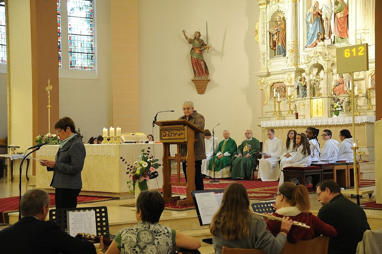 Vor Abschluss des Gottesdienstes richteten dann Lucien Schaaf, Vorsitzender des Kirchenrates und Camille Schartz, Vorsitzender des Pfarrverbandsrates, warme Dankesworte an beide Schwestern für ihre stete Bereitschaft und die ausgezeichnete Zusammenarbeit in all den Jahren ihres Wirkens.