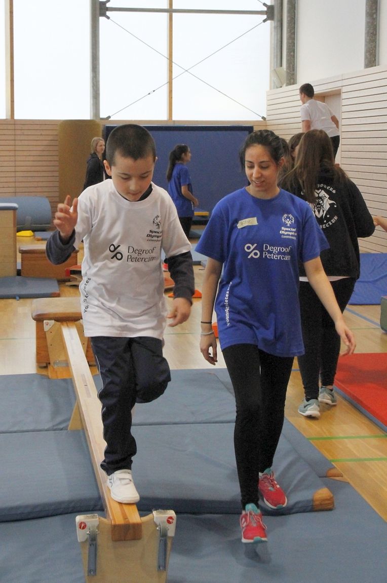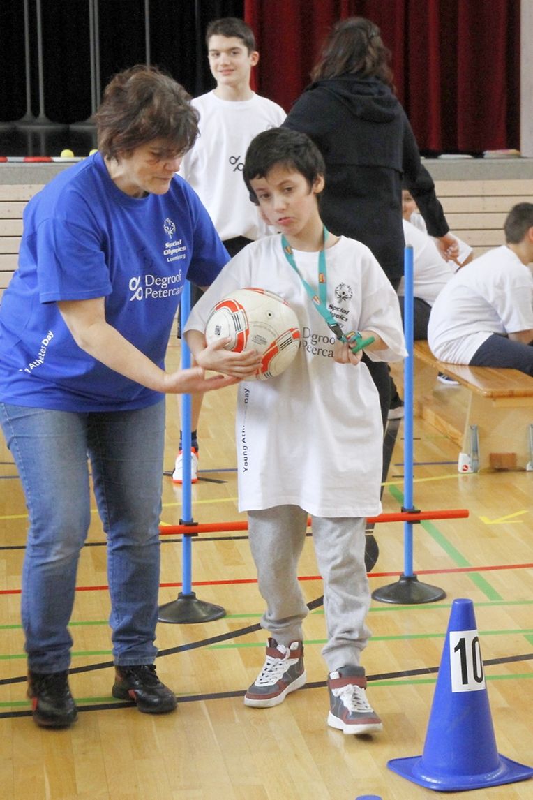 Der 2. Young Athletes Day organisiert von Special Olympics Luxembourg kannte einen bemerkenswerten Erfolg. Rund 100 Schüler aus verschiedenen Centres d'éducation différenciée des Landes nahmen an diesem interessanten Sporttag in der Ecole Privée Sainte-Anne in Ettelbrück teil. Mehr als 10 Ateliers warteten hier auf die jungen Teilnehmer, welche im Laufe des Tages von mehr als 30 freiwilligen Helfer bestehend aus Professorinnen und Schülerinnen des EPSA sowie aus Angestellten der Bank Degroof/Petercam. Wärhend mehr als zwei einhalb Stunden konnten die Kinder und Jugendlichen sich an den Geschicklichkeits- und Koordinationsstrecken sowie bei verschiedenen Wurfwettbewerben austoben. Kooperative Spiele sowie künstleriche Ateliers rundenten das vielfàltige Angebot, alles in einer tollen Atmosphäre, ab. zum Abschluss gab es neben einem T-Shirt noch eine Medaille als Andenken für alle Teilnehmer, welche sich bereits ein Stelldichein gaben für eine nächste Ausgabe des Young Athletes Day im Jahr 2019. .