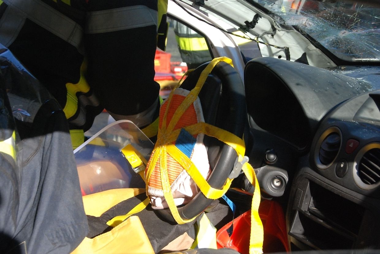 Im Team wurde die „patienten-orientierte“ Rettung der Unfallopfer aus den Autowracks geübt. „Hier zählt jede Sekunde“ betont Ralf Müller, Trainer von „Safety-Tour“. „Wir Feuerwehrmänner retten keine Leben, das machen die Notärzte am Einsatzort und in den Krankenhäusern. Wir sind dafür zuständig, Zeit zu gewinnen, damit die Ärzte die lebensrettenden Maßnahmen einleiten können. Die Feuerwehr muss schneller und besser werden und das wird hier trainiert.“