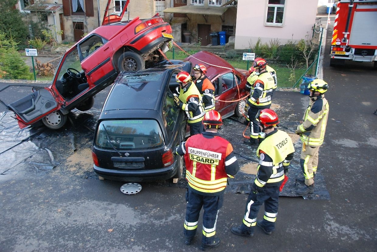 Nach einem theoretischen Kursus am Vormittag wurde nachmittags die Praxis mit Auffahrunfällen oder Überschlägen sowie Unfällen mit einem oder mehreren Unfallopfern simuliert. Eingeklemmte Personen wurden realitätsnah mit Hydraulikscheren und -pressen aus den Fahrzeugen befreit. Zusammen mit den deutschen Ausbildern lernten die Feuerwehrmänner aus Fels, Waldbillig und Heffingen alternative Vorgehensweisen kennen.