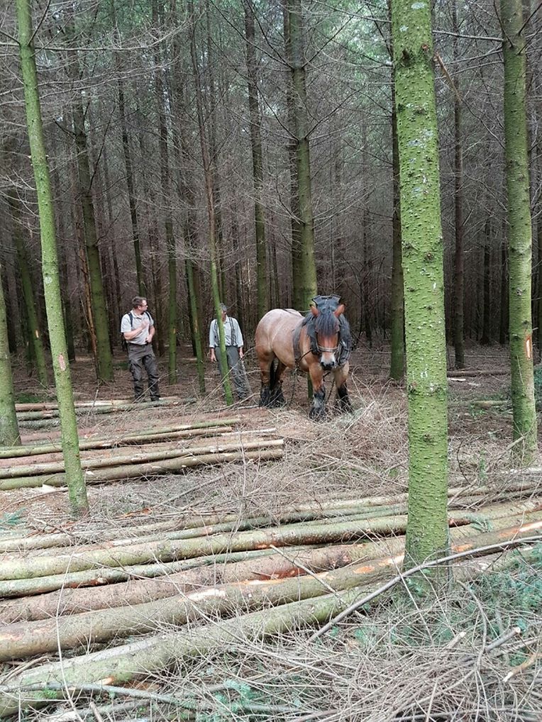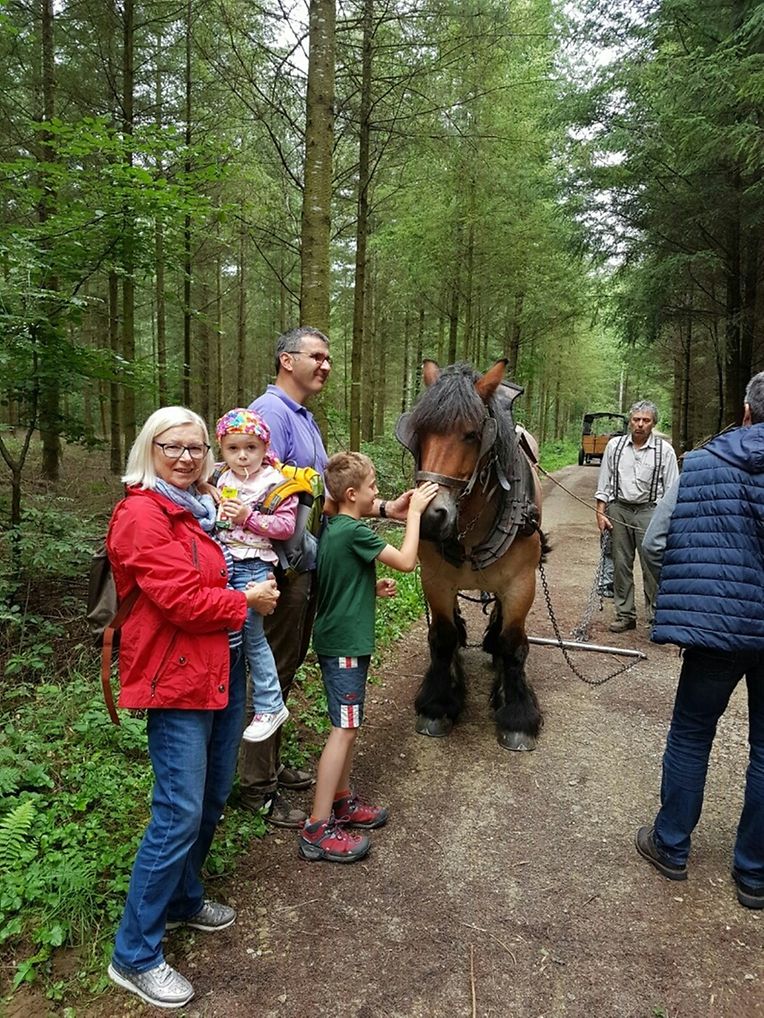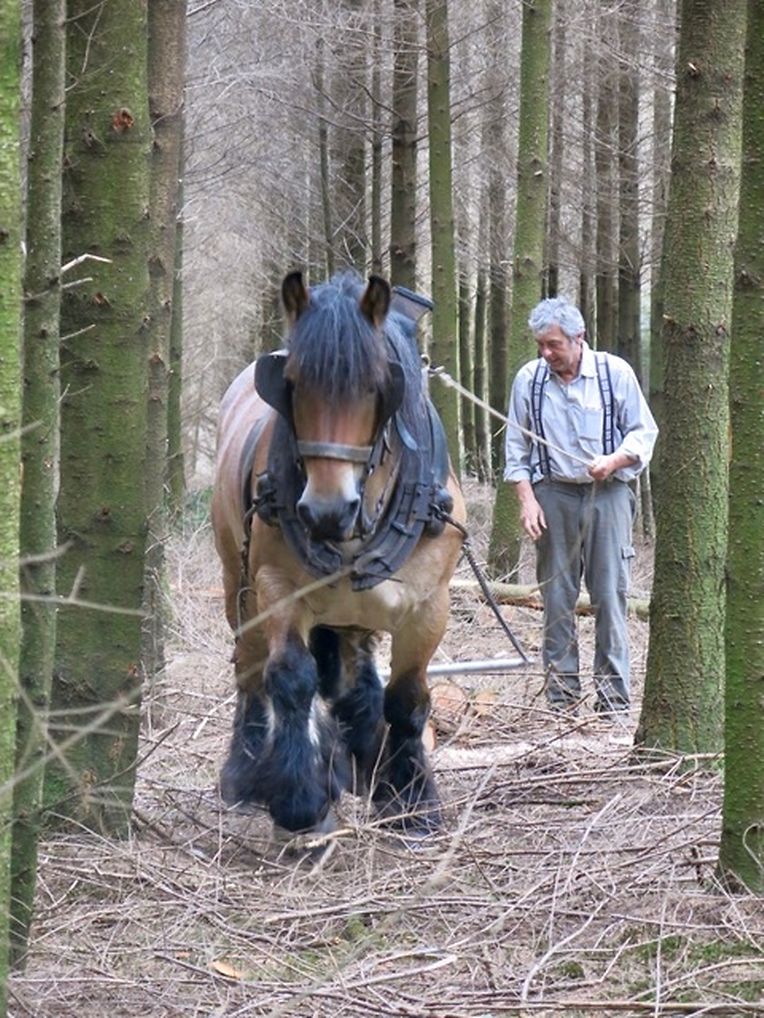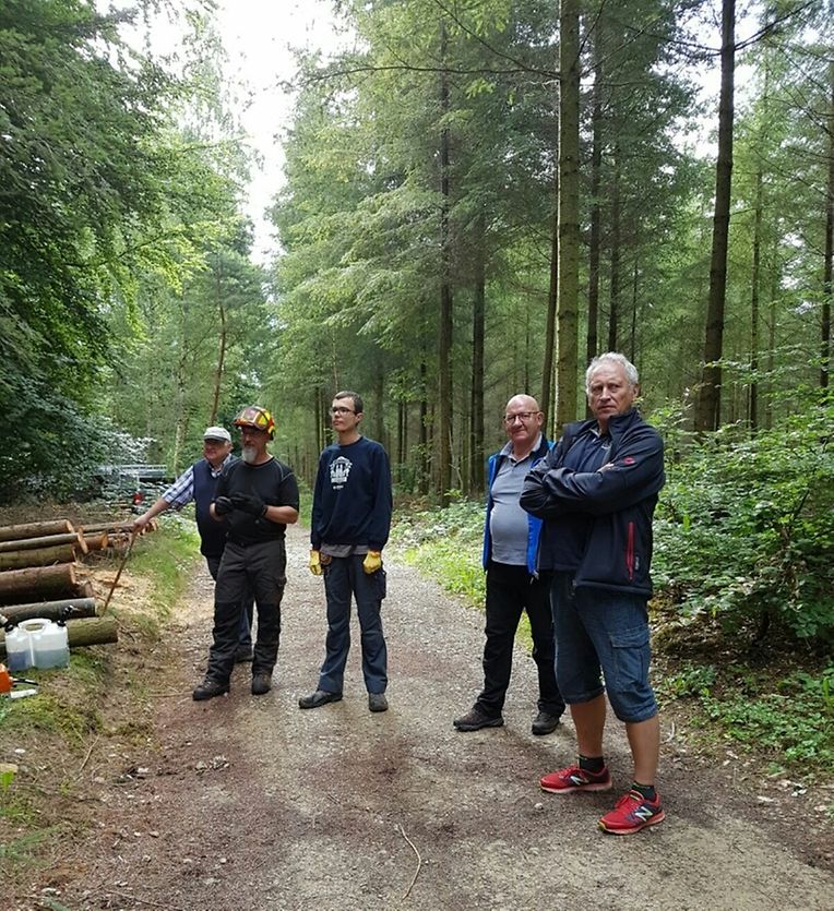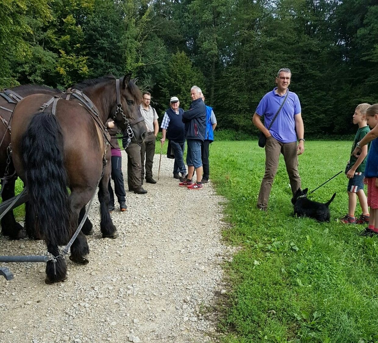 So hatten sich heuer 20 Leute zu dieser Erkundungsfahrt, nicht unweit des Schlosses von Larochette eingefunden. Hier wurde Ihnen während dieser interessanten Lehrfahrt einen Einblick geboten von den Arbeiten in einer nachhaltige Waldwirtschaft. Geleitet wurde dieser Ausflug vom Forstleiter David Farinon und Leo Klein, welche mit ihren Erklärungen den Teilnehmern einen Einblick in die nachhaltige Waldwirtschaft vermittelten. Beide nutzten ihre fachmännischen Erklärungen zur Erläuterung der nachhaltigen Waldwirtschaft, sowie diese in den Forsten mit den Pferden betrieben wird. Die Teilnehmer verfolgten das Arbeiten der Waldarbeiter mit ihren Arbeitsgeräten, sahen wie Bäume gefällt und konnten dann anschließend das Rücken von Bäumen mit dem Pferd beobachten. Beim Rücken der Baumstämme wurde auf das bodenschonende Arbeiten mit den Pferden und auf die Vermeidung von Rückeschäden am stehenden Baumbestand durch die präzise lenkbaren und wendigen Pferde, hingewiesen.