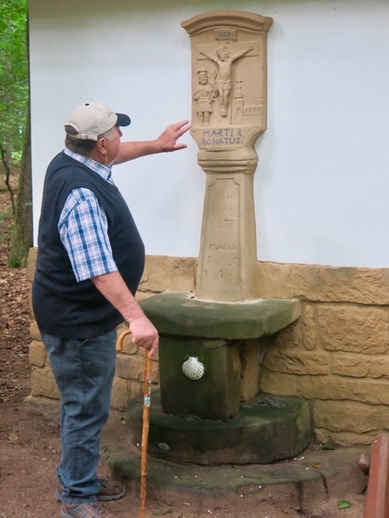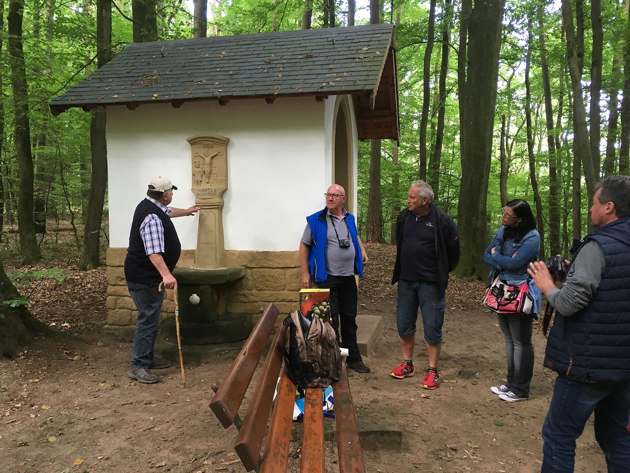 Bei einem Stop, wo die Förster den Teilnehmern eine Erfrischung anboten, gab es des Weiteren Erklärungen zur Geschichte einer Kapelle und einem Wegkreuz, welche an einem Pfad in Richtung Nommern, versteckt in einem Hochwald, anzutreffen sind.