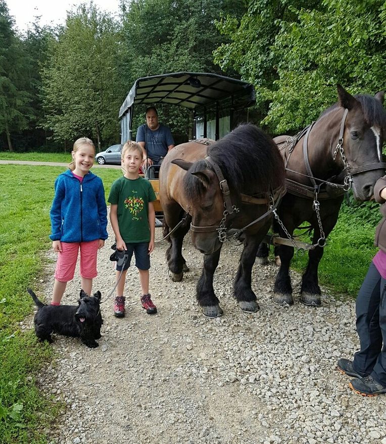 Diese Kutschenfahrten in den Wald sind wärmstens zu empfehlen, sowohl für Erwachsene und besonders für Kinder. Diese Touren ´´ mit dem Pferd in den Wald ´´ werden allen Gästen gratis angeboten. Die Teilnehmerzahl ist begrenzt und liegt bei maximal 20 Personen. Um vorherige Anmeldung, bis spätestens einen Tag vorher, wird gebeten. Nach zweieinhalb Stunden Fahrt kehrt die Gruppe dann wieder zum Startpunkt zurück.