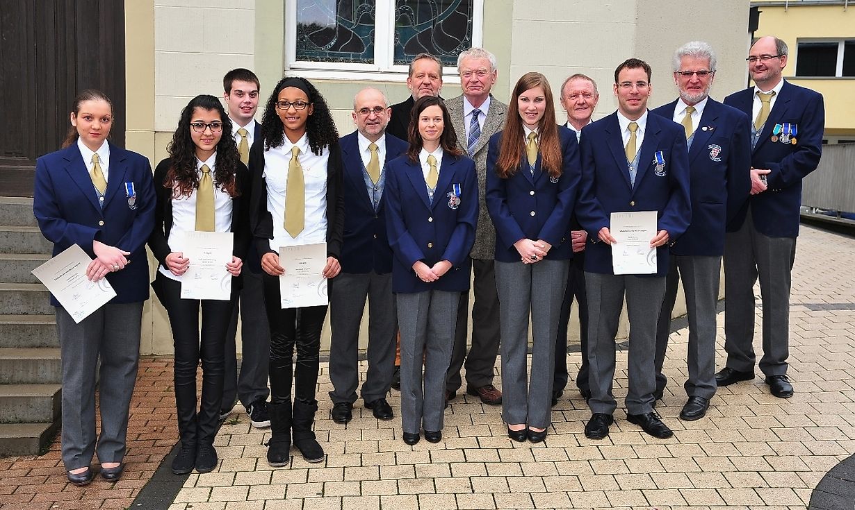 Im Rahmen des diesjährigen Caecilienbanketts der Fanfare Feulen wurden neulich mehrere langjährige und verdienstvolle Musikanten mit Ugda- Auszeichnungen geehrt. Eingangs erinnerte Fanfare- Präsident Jean- Marie Bormann an die Verdienste des kürzlich verstorbenen Musikanten Jos Schank und dankte sämtlichen Musikanten und Vorstandsmitgliedern um Dirigent Jean- Marie Thein sowie sous- Chefin Sandy Schaltz mit allen Vorstandsmitgliedern und Helfern für ihren steten und ehrenamtlichen Einsatz im zurückliegenden Jahr. Im Anschluss an seine Glückwünsche hob Roby Mamer in seiner Eigenschaft als erster Vizepräsident des Ugda- Dachverbandes den hohen Stellenwert und die Bedeutung einer gut geführten Musikgesellschaft auf kultureller Ebene besonders hervor. In Gegenwart von Ehrenpräsident Marcel Thill konnten seitens der Ugda folgende Musikanten ihre wohlverdiente Auszeichnung in Empfang nehmen. Das Jugendabzeichen für fünf Jahre Treue zur Musik erhielten Cindy Alves, Cheyenne Rodrigues, Max Urbany und Lynn Wiroth. Pol Piret und Léini Schreiner, seit zehn Jahren aktiv, wurden mit einer Bronzemedaille geehrt. Die Silbermedaille für 20 Jahre musikalisches Engagement wurde Christian Ewen, Véronique Hansen und Nadine Steichen angeheftet während Rol Frank, Danielle Rodesch und Guy Storn mit einer Goldmedaille für 30 Jahre ausgezeichnet wurden. ( FOTO: CHARLES REISER)