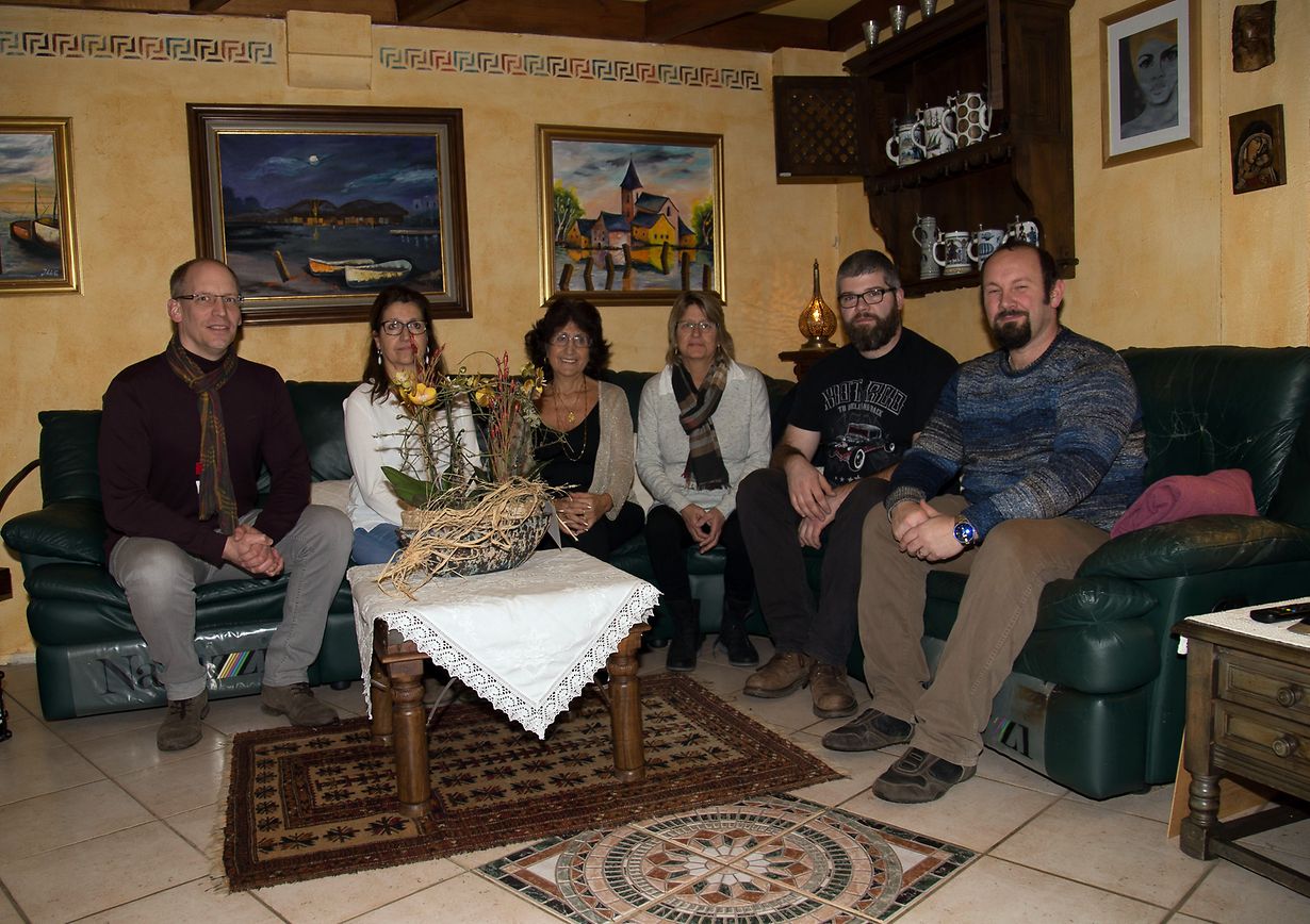Zu de Gratulanten huet och de Schäfferot vun der Gemeng Fëschbech gehéiert, mam Buergermeeschter Fränk Daems an de Schäffen Patrick Grotz a Luss Brosius, déi dem Lori Gatti ee schéint Blummenarrangement iwwerreecht hunn.