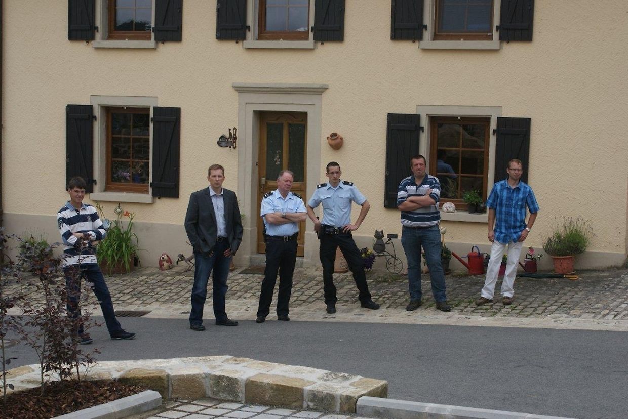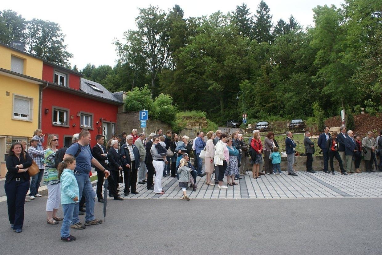 Nach verschiedenen Reden über die Entstehung des Platzes und der Namensgebung wurde der Platz besichtigt. Von Fischbach aus ging es mit dem Bus dann noch nach Weyer, wo die kleine, circa 400 Jahre alte Kapelle renoviert wurde und jetzt alte Wegkreuze beherbergt. Zum Schluss hat die Gemeinde noch alle Gäste ins Veräinshaus in Schoos zum Ehrenwein eingeladen. Ab 20.00 Uhr wurde ein Dorffest für alle Einwohner mit einer kleinen Showeinlage des Cycle 4 aus der "Angsber Schoul" abgehalten.