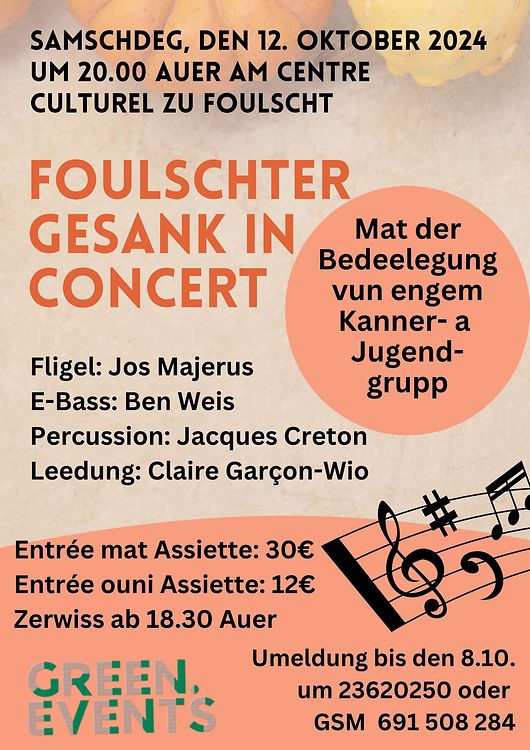 ♻️🌱Speziell fir de Concert : Foulschter Gesank in Concert, de 12. Oktober, huele mir dofir folgend Moossnahmen: