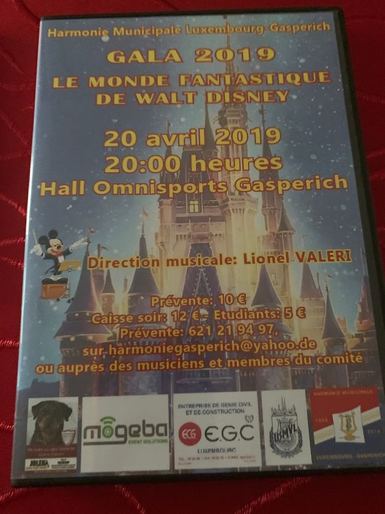 Luxembourg - Gasperich DVD CD GALA 2019 Le monde fantastique de Walt Disney Marianne Degregori Publié le mardi 21 janvier 2020 à 08:45 Gasperich, Luxembourg, Luxemburg DVD/CD du concert de gala 2019 le monde fantastique de Walt Disney disponible. contact: 621219497 M. Degregori ou harmoniegasperich@yahoo.de www.hmlg.lu Signaler contenu inapproprié Plus de nouvelles de Marianne Degregori > Kiichten 22/06/24 Luxembourg - Gasperich Blummen 12/06/24 Luxembourg - Gasperich TeamGym2022 an der Coque 29/10/22 Luxembourg - Gasperich Rous aus dem Gaart 19/09/22 Luxembourg - Gasperich owes de Waasserturm Cloche d’Or 26/08/22 Luxembourg - Gasperich