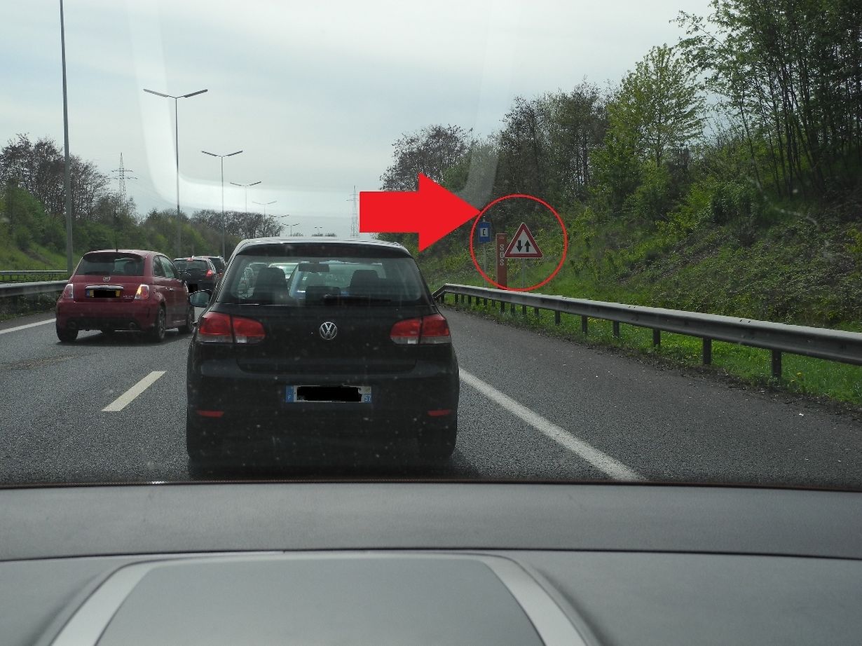 Dieses Schild befindet sich auf der Umgehungsautobahn der Stadt Luxemburg, kurz vor der Abfahrt nach Gasperich.