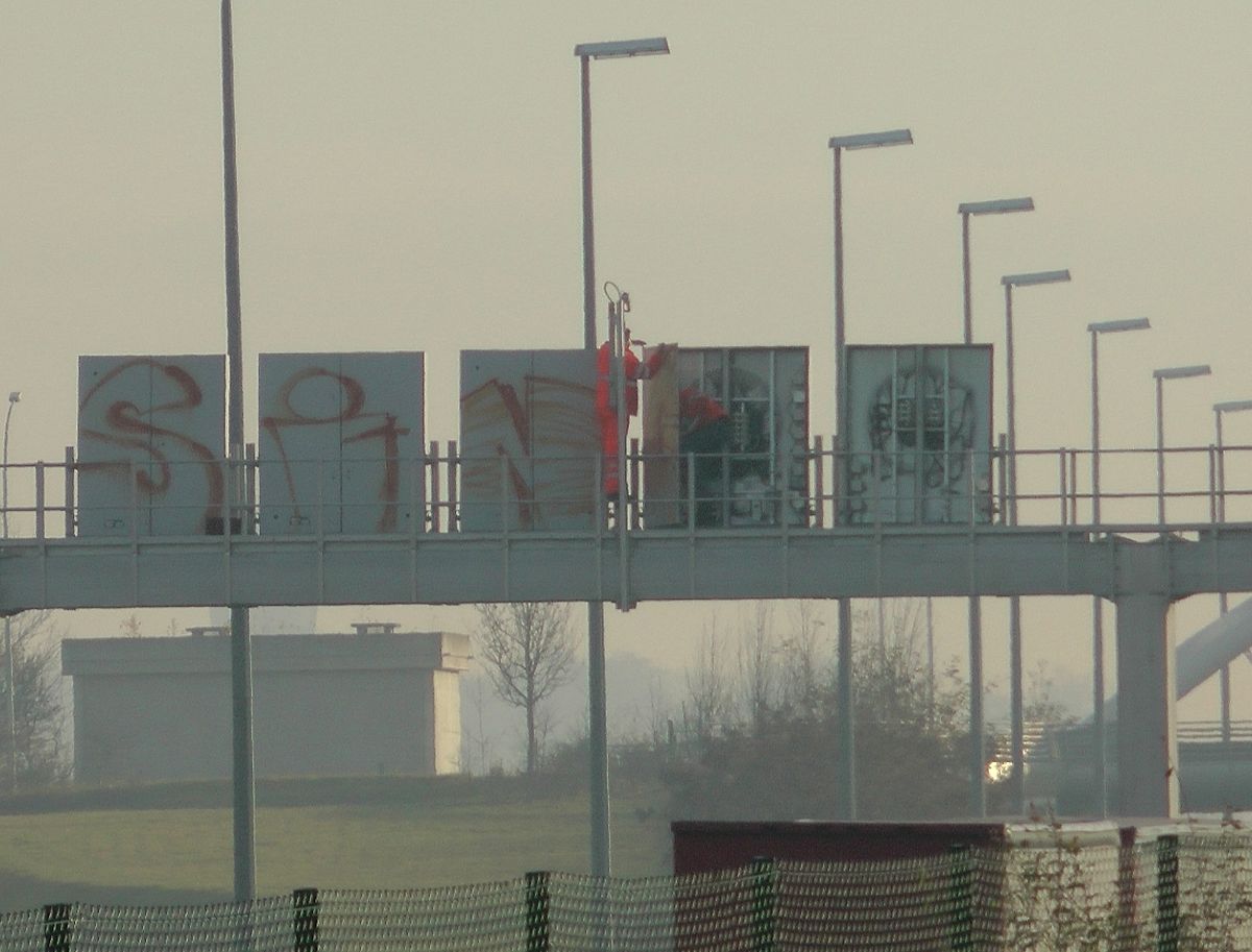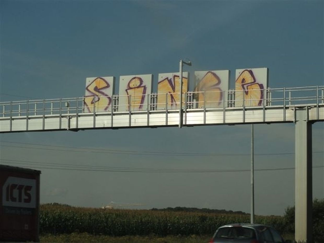 Ende August "schmückten" Sprayer ein CITA-Hinweisschild auf der A6 mit dem Schriftzug "Singe".