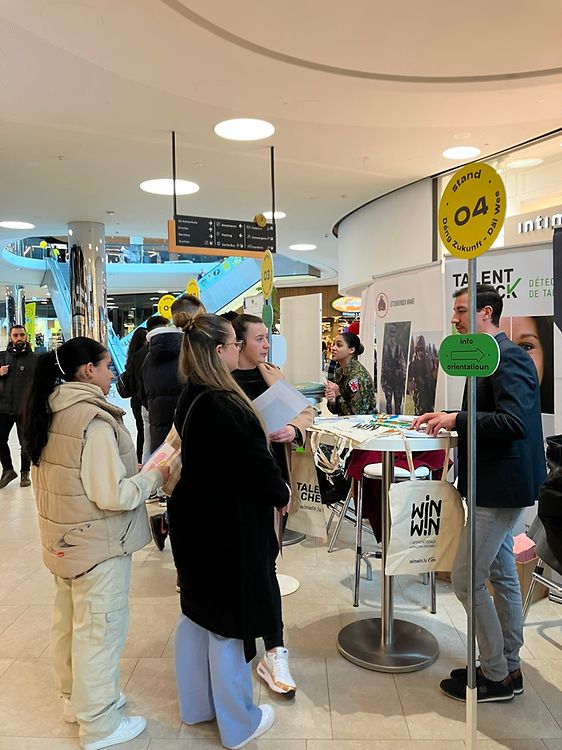 Dee passende Beruff oder Studiegang auszewielen ass net ëmmer einfach. Fir déi Entscheedung z’erliichteren huet de Jugendtreff Norden (Elisabeth Jeunesse) zesumme mat 3 jonke Meedercher d’Infobourse „Deng Zukunft – Däi Wee“ am Shopping Center Cloche d’Or besicht.