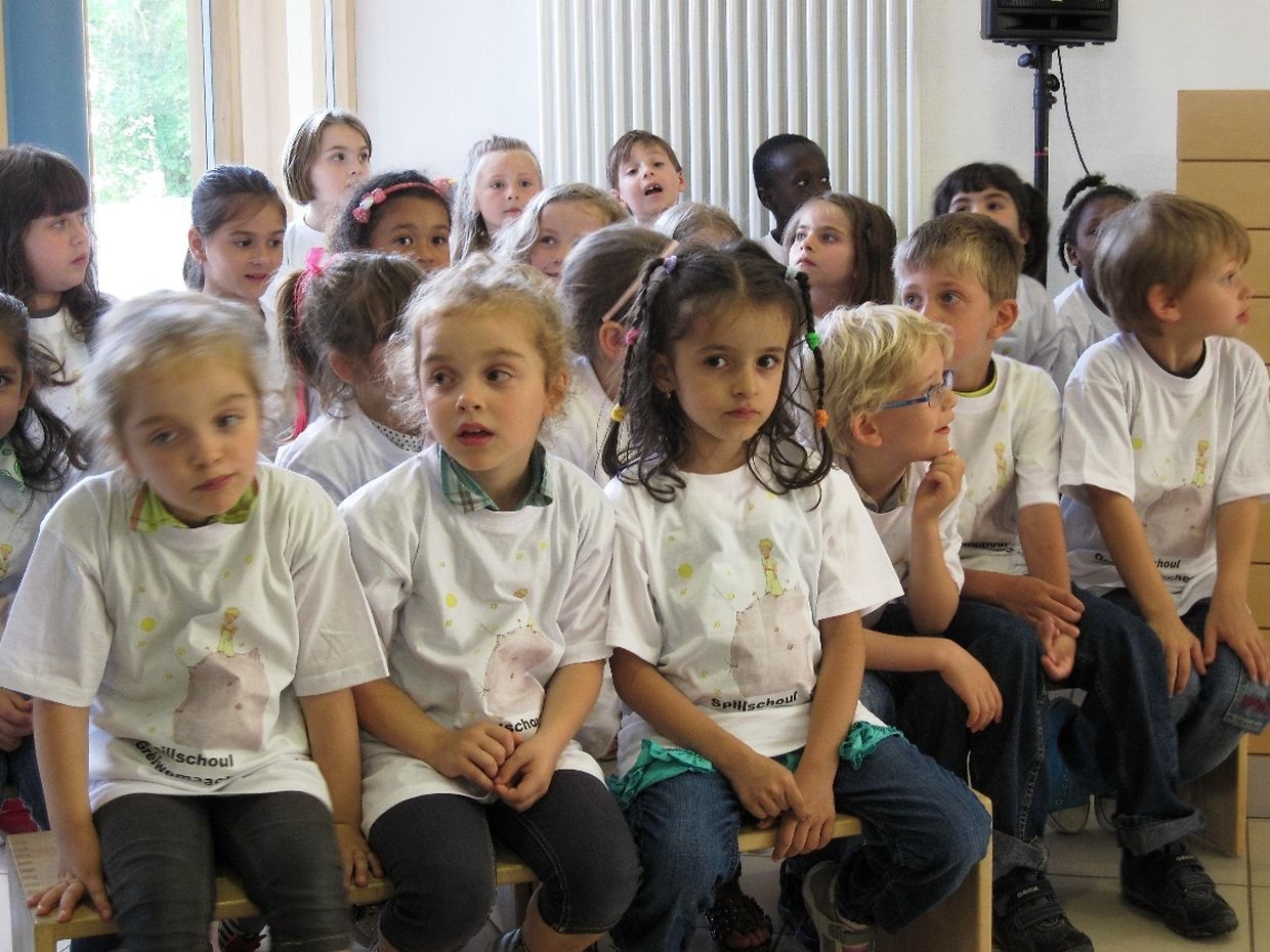 Mat engem Danz, opgefouert vun de Spillschoulskanner, an hire schéinen T-Shirte mam klenge Prënz vir drop a mat grénge Fräschen, awer och mat den Nimm vun hire Komerodinnen a Komeroden hannen drop, hat d'Feierstonn ugefaang.