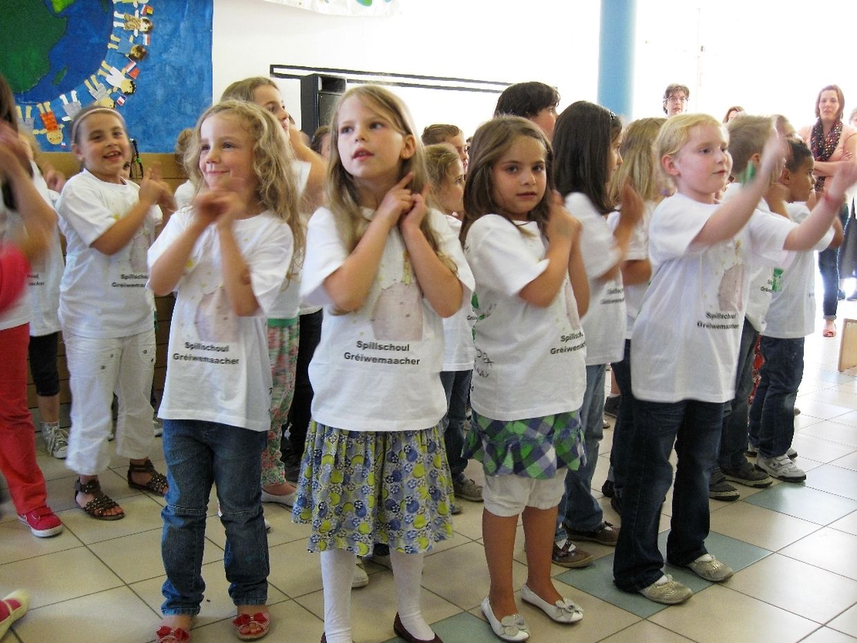 "Mir soen Äddi, d'Spillschoul geet zu Enn, mä mir bleiwe Frënn!", huet et gëschter am spéiden Nomëtteg wéi aus engem Mond an der Spillschoul zu Gréiwemaacher geheescht, an engem flotte Lidd, dat "déi Grouss" aus der Spillschoul zesumme mat hire Léierpersoune viru ganz ville Leit gesongen hunn.