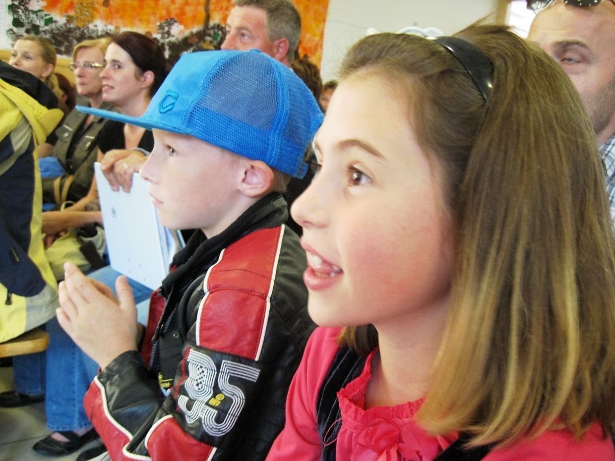 E spannende Moment war d'Iwwerreechung vum Portfolio, mat engem Cadeau vun de Léierpersounen, un d'Kanner, déi ganz houfreg bei hir Eltere geschréckt sinn. Ganz intresséiert huet Kleng a Grouss duerno op d'Klasseverdeelung gewaart; déi "nei" Léierpersoune waren och op d'Fest komm, an d'Kanner an d'Eltere konnte se eng éischt Kéier vu ganz no gesinn.