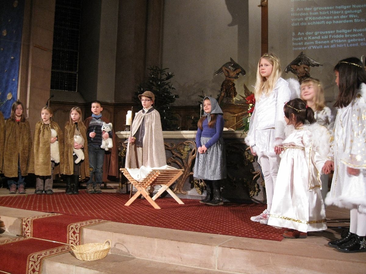 Et war wonnerschéin, dat Krëppespill, dat eng ganz Parti Kanner an de Metten op Hellegerowend an der iwwerfëllter Dekanatskierch zu Gréiwemaacher opgefouert hunn.