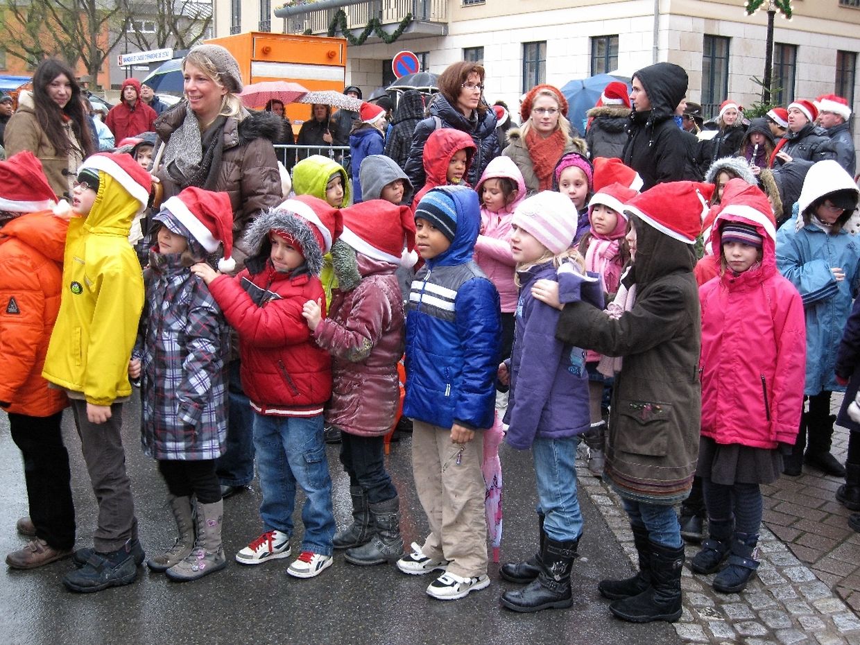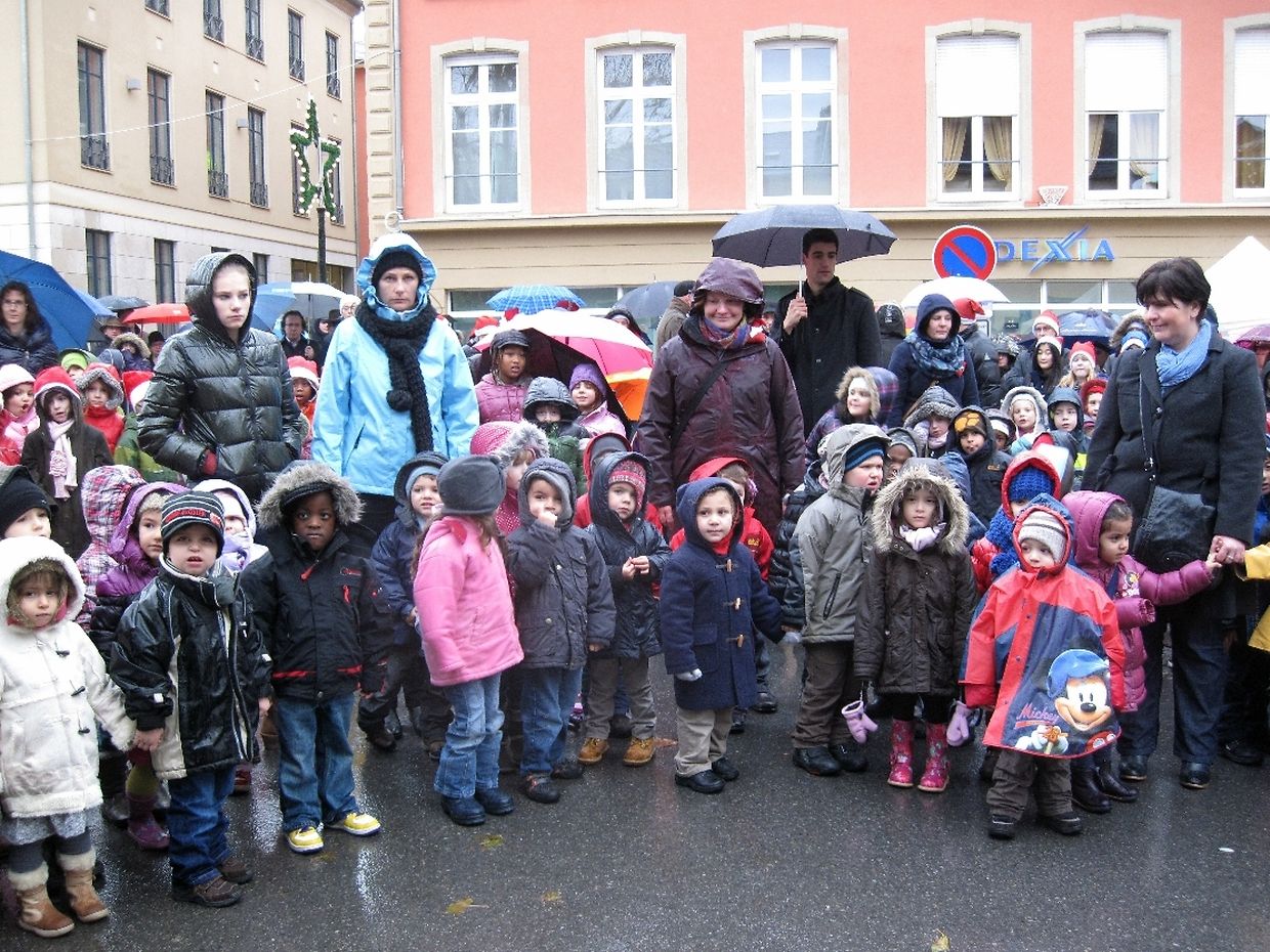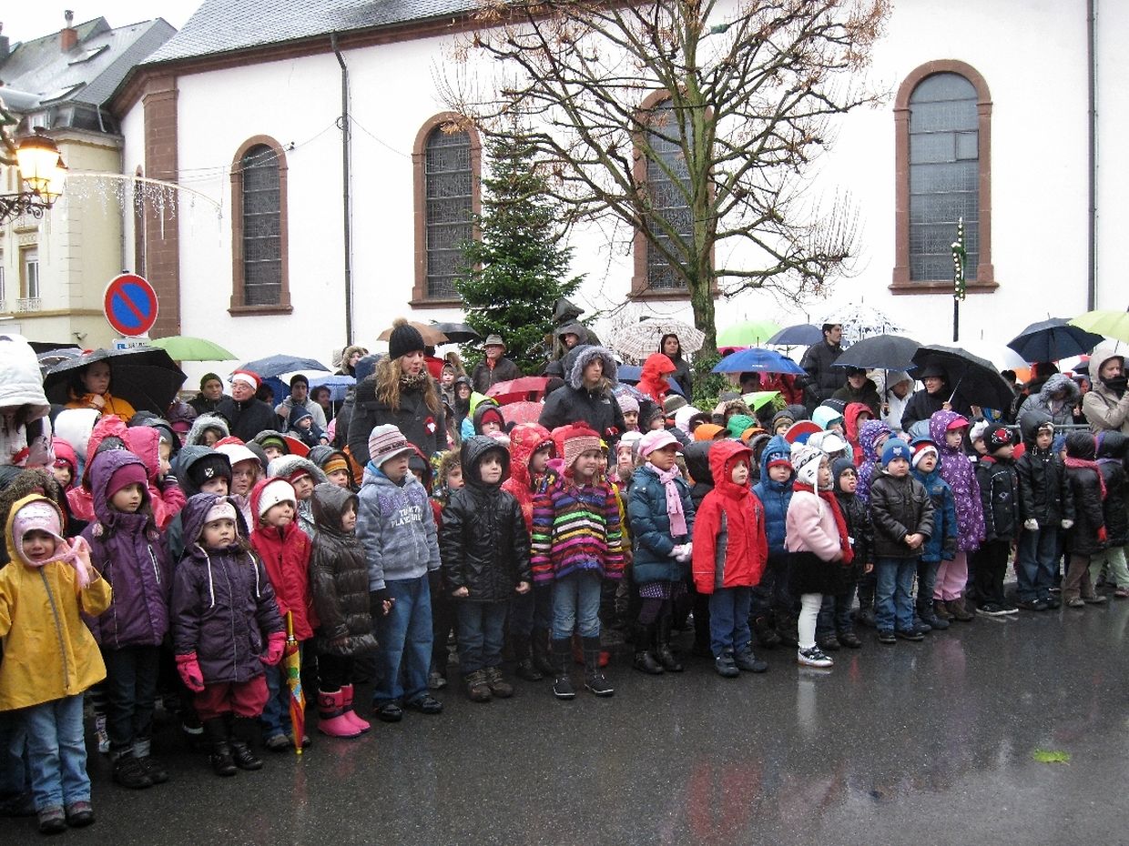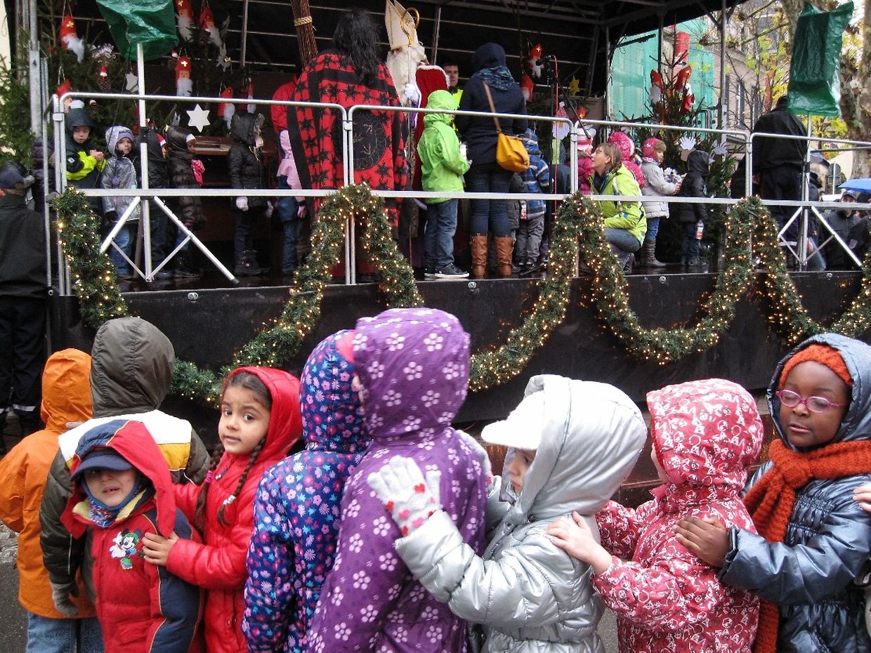 Op der Maartplaz hunn déi Kleng mat hire Léierpersounen deem léiwe Kleeschen hir Reverenz erwise mat Liddercher a Gedichter, déi scho laang virdru fläisseg geprouft gi waren. Datt d'Kanneran trotz dem Reen geliicht hunn, versteet sech vum selwen.