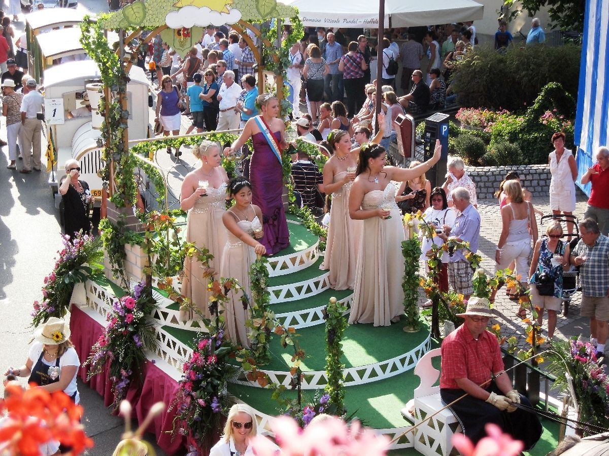Fir deem ganzen Drauwen- a Wäifest e besonneschen Touch ze ginn, huet d'Sonn et esouzesoe kee Moment ënnerlooss, fir vum bloen Himmel ze stralen, esou, wéi et sech ägentlech passt, wann e besonnescht Fest zu Maacher um Programm steet...