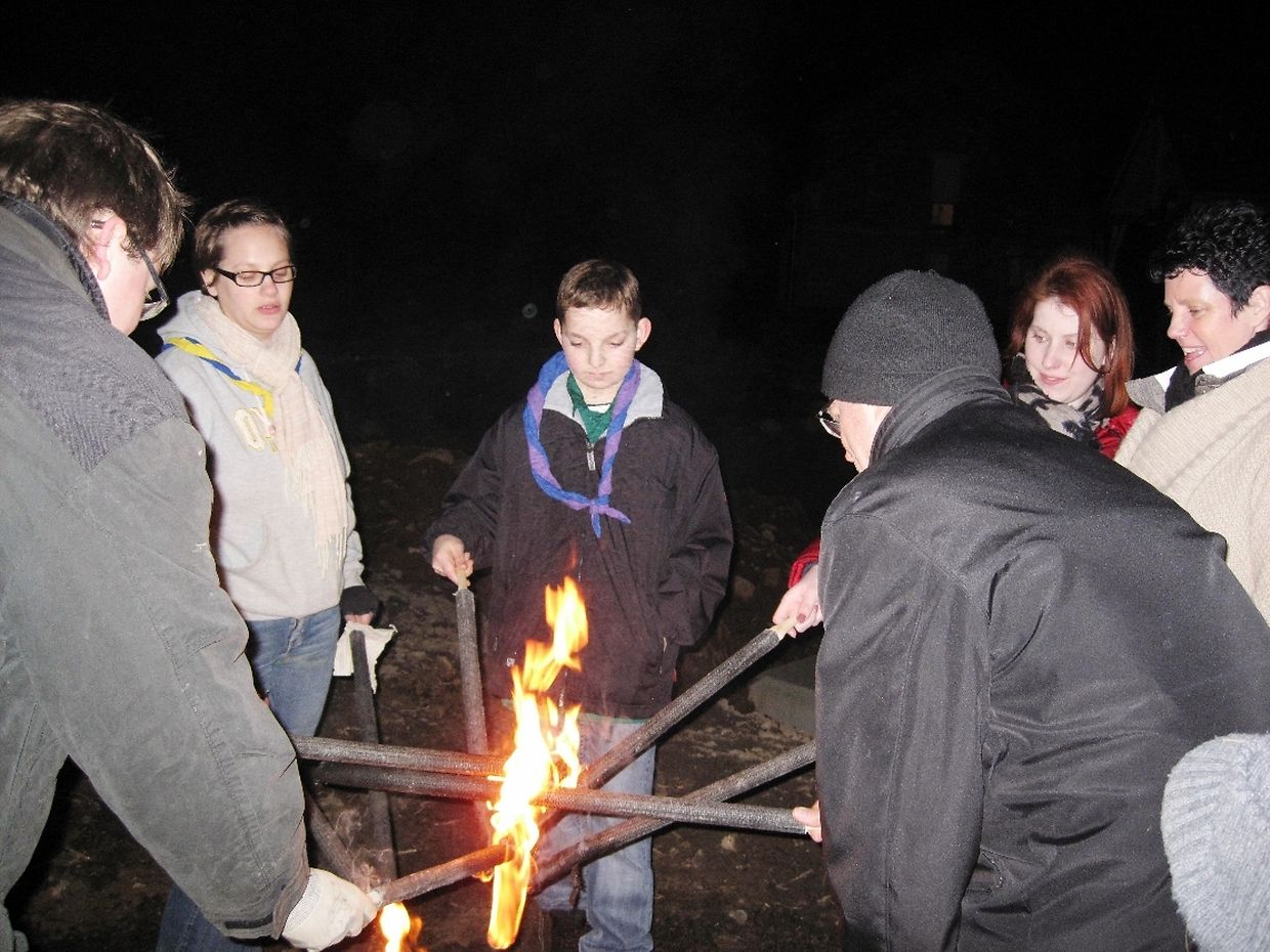 Scho gëschter den Owend - an net eréischt haut op Buergsonndeg - haten d'Amicale vun de Maacher Guiden a Scouten an de Groupe Saint Laurent op d'Buergbrennen op deen härleche Site beim Aussiedlerhaff héich iwwer Gréiwemaacher agelueden.