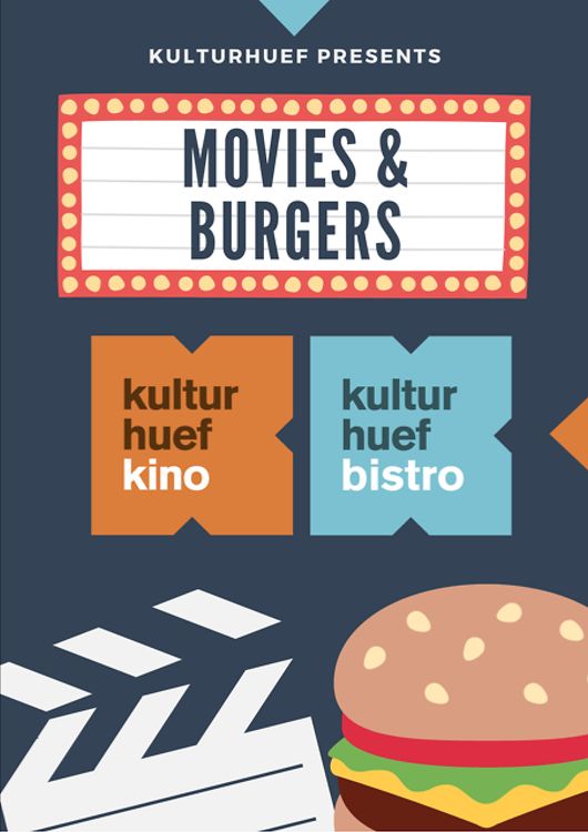 New: Burger Deal Fridays and Saturdays at Kulturhuef Kino & Bistro: Buy your tickets online, show them (or your email) at the Bistro and choose one of the famous Bistro burgers with fries before the film for only 10,50€! Have a great night with dinner and a movie all at Kulturhuef!*