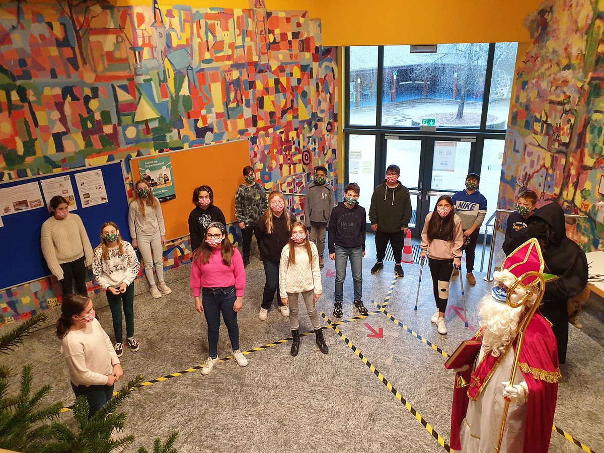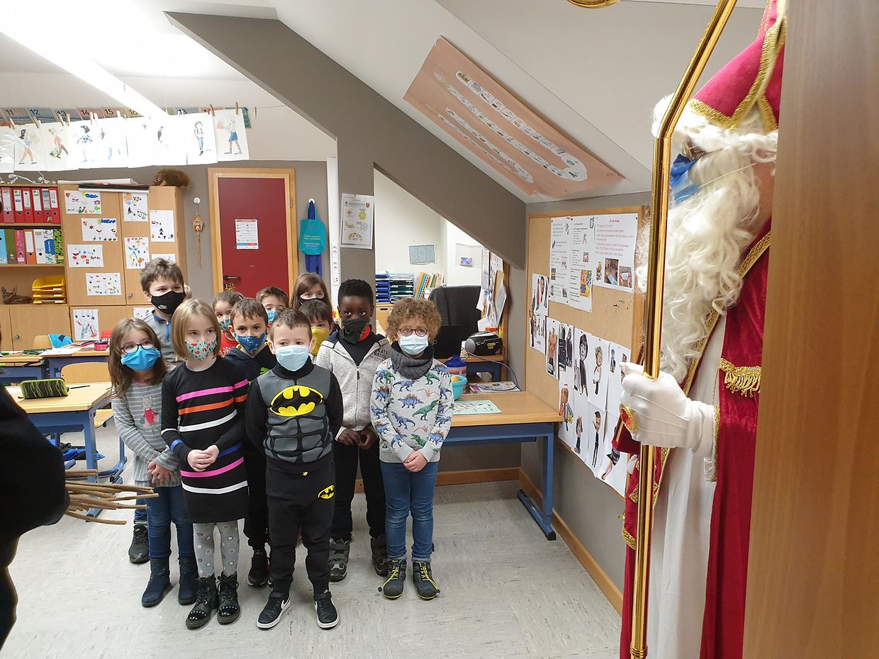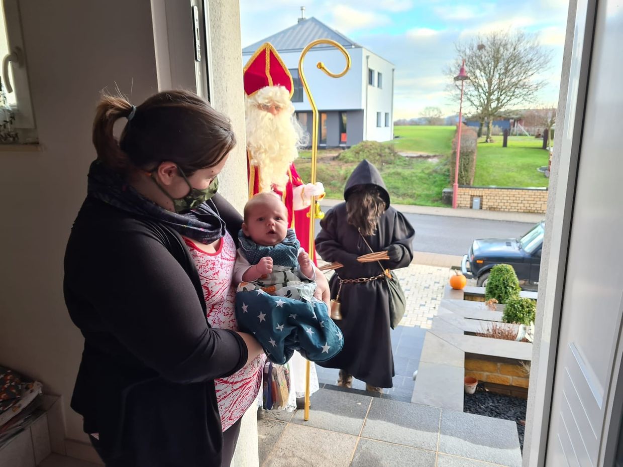 De Kleeschen a säi Gesell hunn sech et net huele geholl looss och dëst Joer di Groussbusser Schoulkanner ze besichen an hinnen eng kleng Freed ze maachen, dat ganzt natierlech am Respekt vun de sanitäre Virschrëften. No der Visitt an der Schoul huet dem Kleesche säi Wee dunn duerch Duerf bei di kleng Kanner gefouert, fir hinnen och eng Titchen bei d'Hausdier ze bréngen.