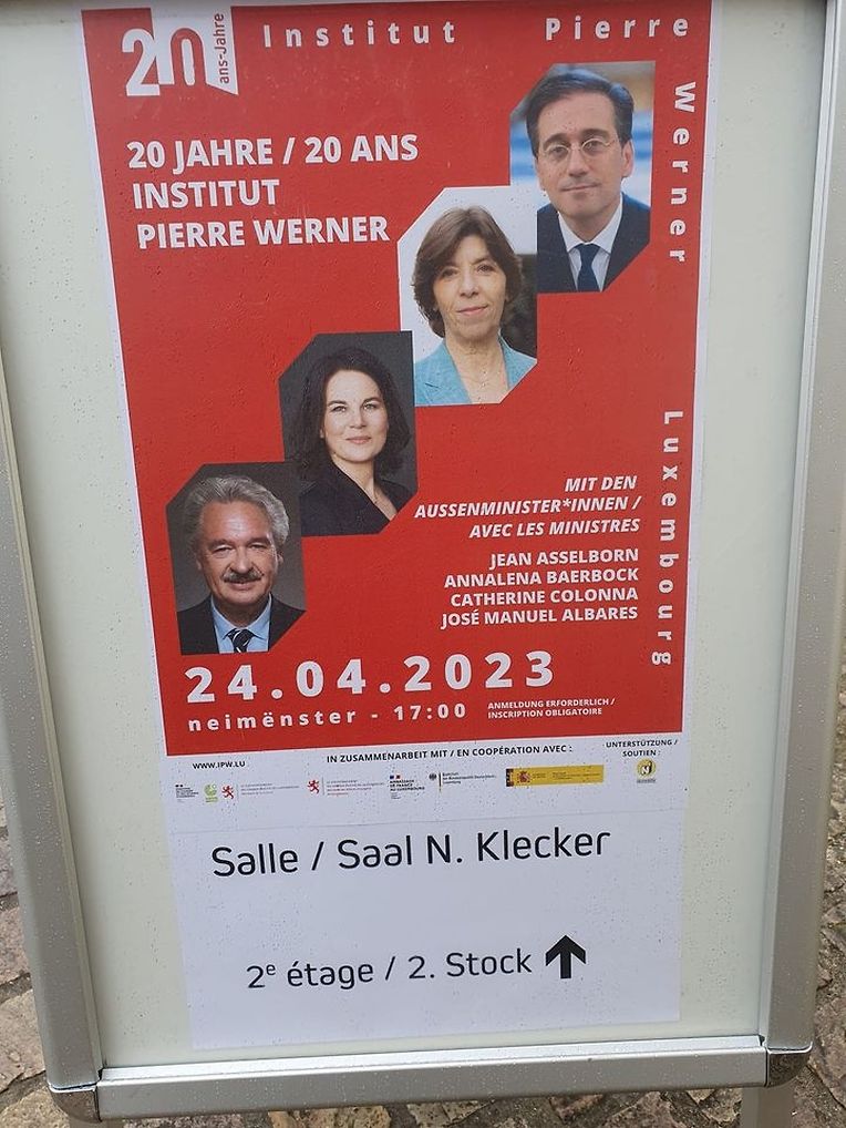 Die Europa-Union Luxemburg gratuliert dem Institut Pierre Werner zum 20-jährigen Bestehen und bedankt sich für die Einladung zur zugehörigen Feierstunde im Abbaye Neumünster am 24.4.2023.