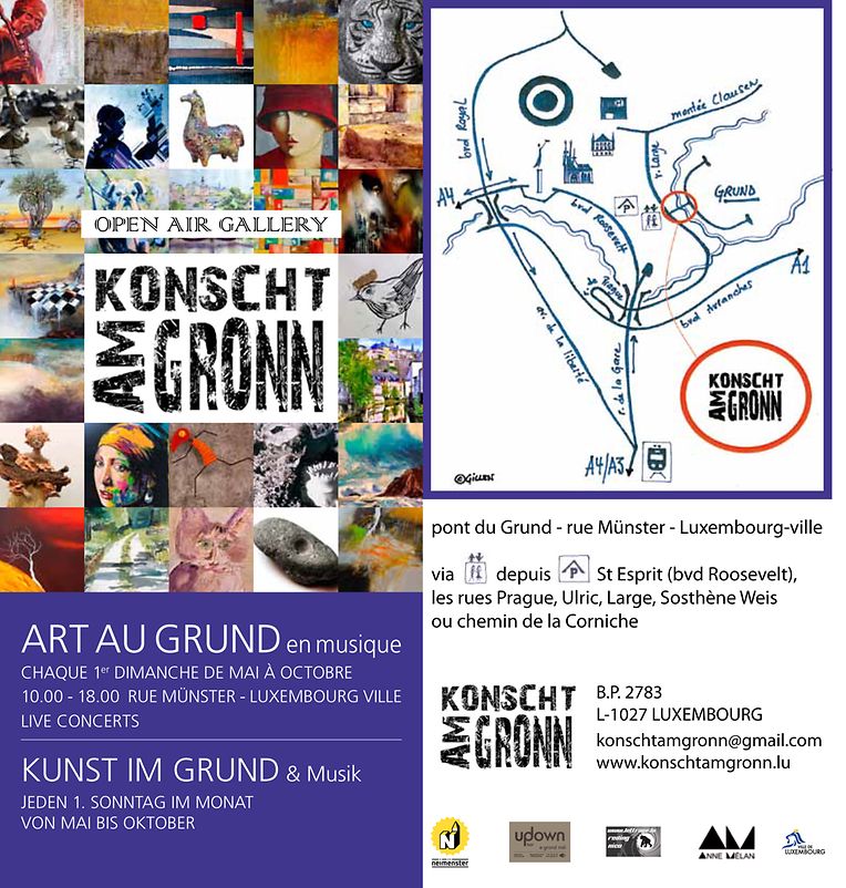 Des informations relatives à La Galerie à Ciel Ouvert "Konscht am Gronn" et toutes candidatures d’artiste peuvent être envoyées à l'adresse courriel konschtamgronn@gmail.com www.konschtamgronn.lu