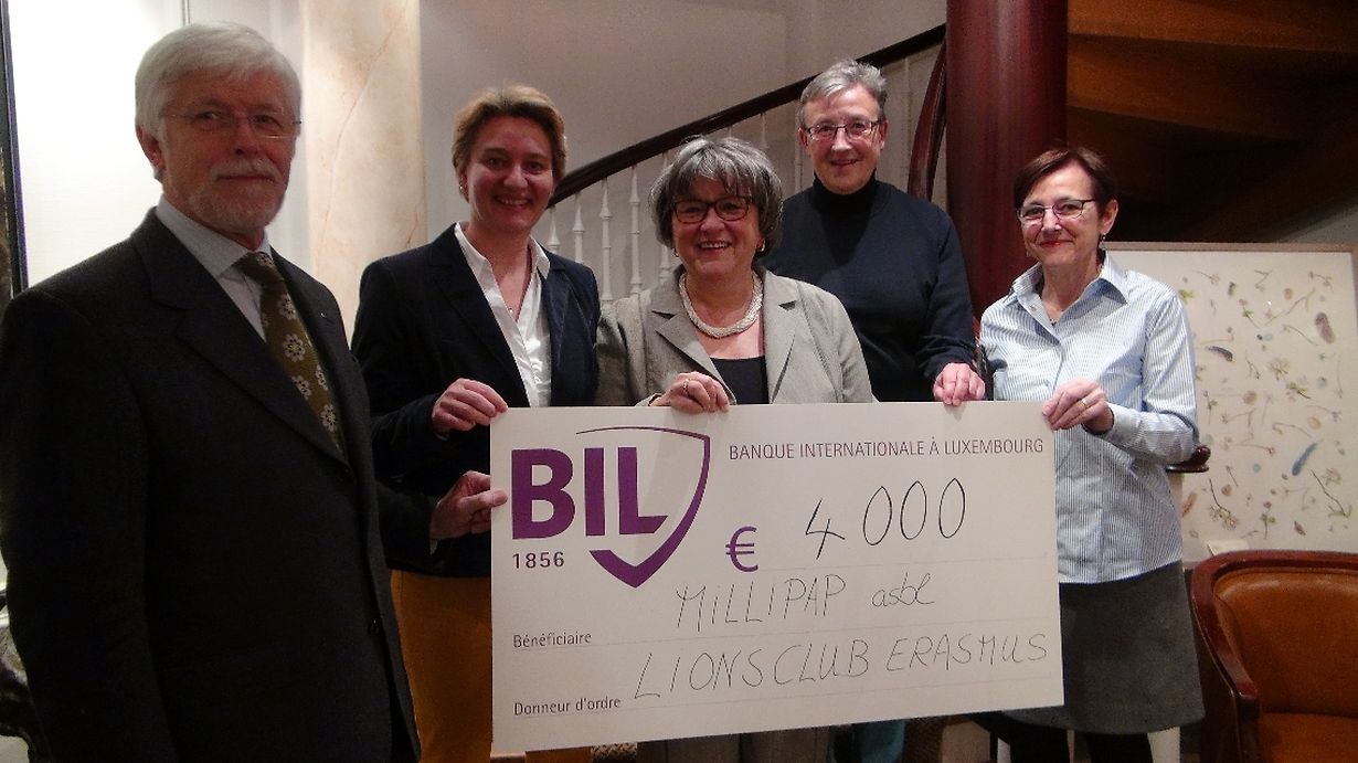 Im Rahmen einer kleinen Feierstunde überreichten Mitglieder des Lions Club Erasmus aus dem Erlös ihrer Aktion “Coins for Kids” vor kurzem einen Scheck in Höhe von 4 000 € an die Vertreterinnen von Millipap asbl, eine Hilfsorganisation zu Gunsten von Kindern in Lumimba – Sambia. Mit Hilfe der Spende können in diesem weit entlegenen Dorf im afrikanischen Sambia Brunnen gegraben werden, um die äußerst schwierigen Lebensbedingungen der Einheimischen zu verbessern. Sie wohnen mehrere hundert Kilometer von der nächstgrößeren Stadt entfernt, und Lumimba ist nur ausserhalb der Regenzeit mit einem Fahrzeug mit Vierradantrieb über eine Savannenpiste zu erreichen ist. Bisher mussten sie mit weniger als einem Liter unsauberen Wassers pro Kopf und Tag auskommen.
