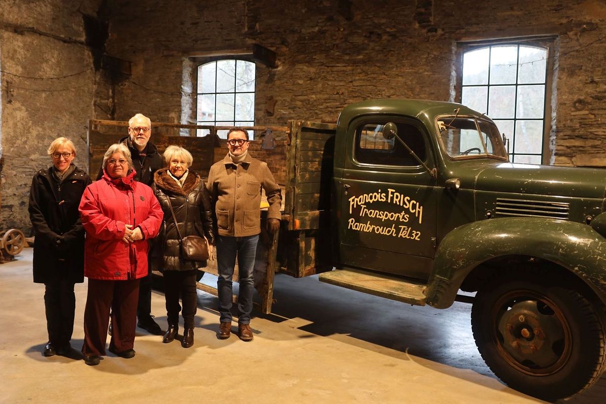 Georges Carbon, Nachkomme des Transport- und Busunternehmens François Frisch aus Rambrouch und bekannt für seine schönen Oldtimerbusse, kontaktierte 2023 das Schiefermuseum wegen seines Dodge Fargo. Dies ist ein Lastwagen, den sein Opa in den 1950er Jahren fuhr, um unter anderem Schiefersteine, - Platten, und -Abfall zu transportieren. Agnes Hoogenhout, Präsidentin der Frënn vun der Lee, Marco Schank, Präsident des Musée de l’Ardoise, Administratorin Doris Thilmany genau wie Georges zusammen mit seiner Mutter Clode Carbon-Frisch trafen sich im Plattenwerk der früheren Schiefergrube für die offizielle Übergabe an diesem kalten 8 Januarmorgen. Der Dodge Fargo war ein Lastwagen, der von den Amerikanern nach dem 2. Weltkrieg in hoher Stückzahl aufs Festland verschifft wurde, um den Kontinent wieder zu motorisieren und den Aufschwung voranzutreiben. Der Dodge Fargo, Baujahr 1948, kann während den offiziellen Besuchszeiten bewundert werden. Das Schiefermuseum Haut-Martelange ist während den Wintermonaten auch unter Tage geöffnet, am Mittwochnachmittag und samstags und sonntags von 10h00 bis 18h00 sowie auch nach Reservierung unter der Woche.