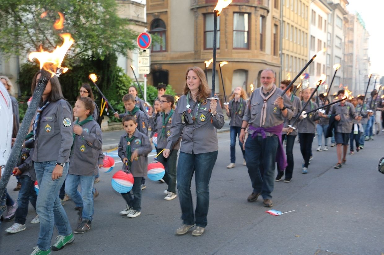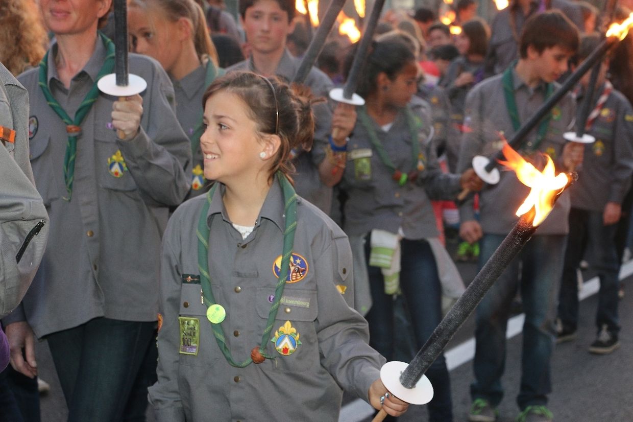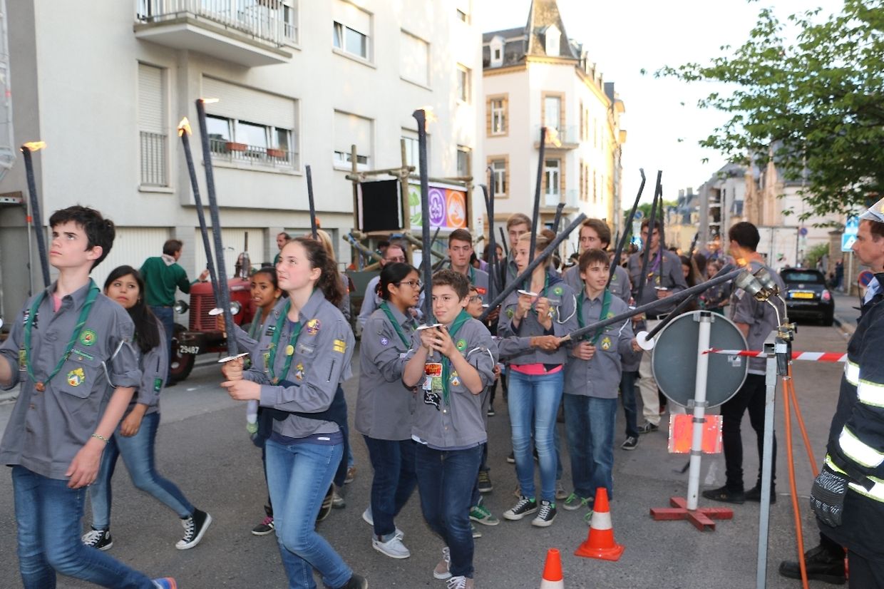 Mit der Teilnahme am Fackelzug feierte die Hoga, Scouten an Guiden aus der Stad, wie jedes Jahr den Nationalfeiertag unseres Landes. Die Jungen und Mädchen trugen ihre Fackeln stolz an der großherzoglichen Familie vorbei, die die Kinder mit Beifall begrüßt. Anschließend wurde das bunte Feuerwerk bestaunt.