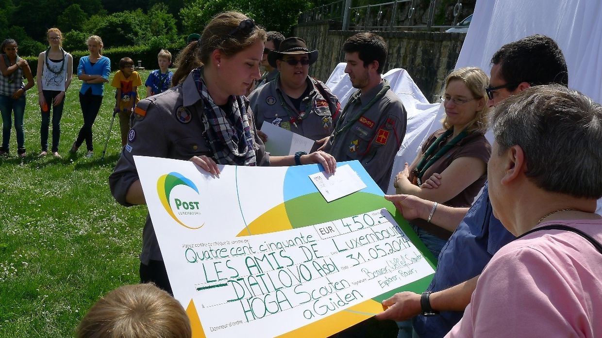 „Challenge 100“ In diesem Kontext hatte sich die Hoga, Scouten an Guiden aus der Stad, zum Ziel gesetzt mindestens 100 Bleistifte, 100 Hefte, 100 Radiergummi, 100 Anspitzer, 100 Buntstifte und 100 Kugelschreiber für Djatlovo, in Weißrussland, zu sammeln.