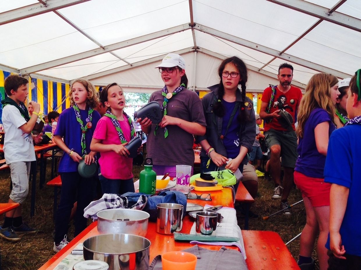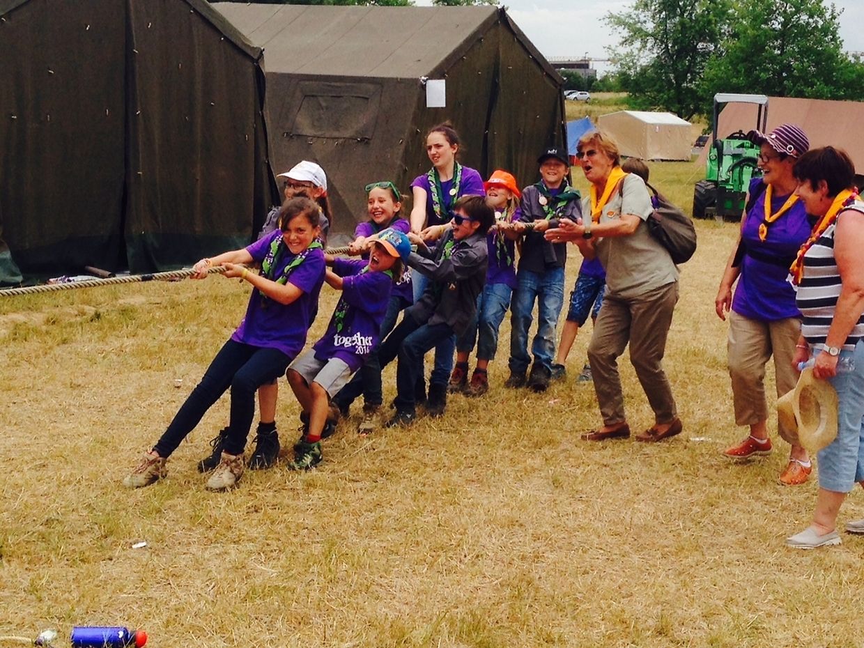 Gegen 13:00 erschienen die ersten Besucher. Familie, Freunde und Bekannte der Kinder sowie ehemalige Pfadfinder erkundeten das Camp und amüsierten sich mit den Kindern und Jugendlichen an den einzelnen Posten, an denen sie sich handwerklich und geschicklich betätigten.