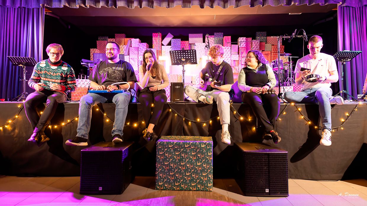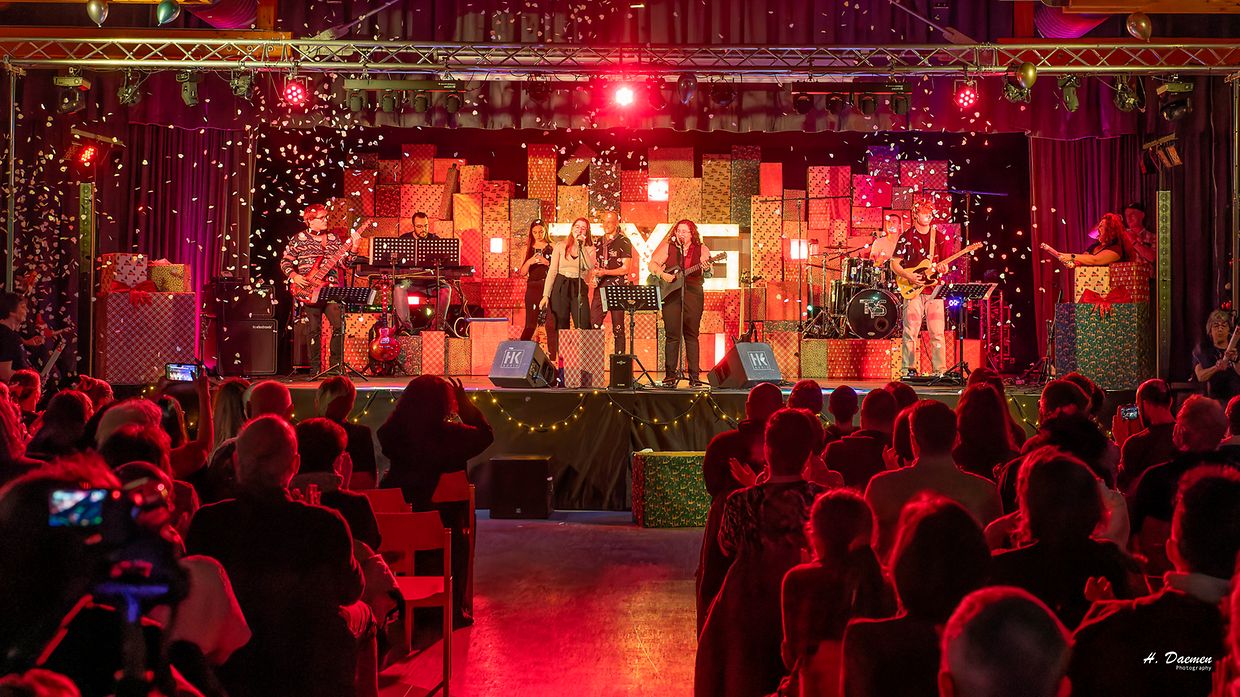 20:00 Auer, de Sall war voll, ongeféier 250 Leit hunn de Wee op Housen fonnt an hunn zesummen déi modern Chrëschtdagsmusek gefeiert, een onvergiesslechen Owend fir jiddereen.