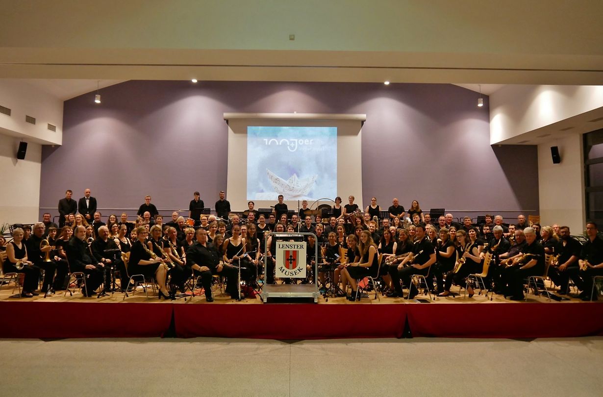 Deser Deeg huet d'Lënster Musek 100 Joer ganz grouss gefeiert mat engem Galaconcert wou iwer 100 Musikannten op der Bühn soutzen.