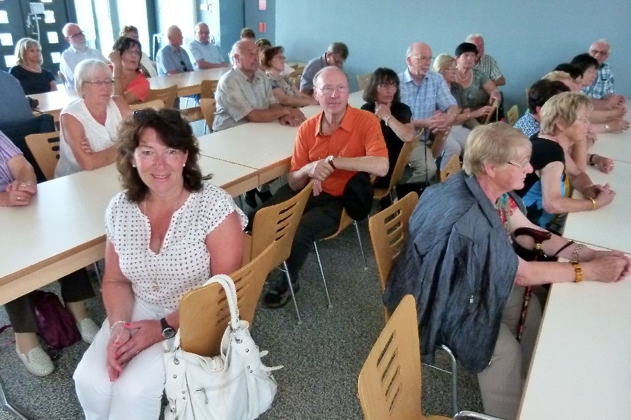 Nach dem Empfang begeben sich alle Teilnehmer zu einem Besuch ins « Lënster Lycée », wo alle begeistert waren von der Schönheit dieses Komplexes und von der Zweckmäßigkeit der Klassenräume und Sportanlagen.