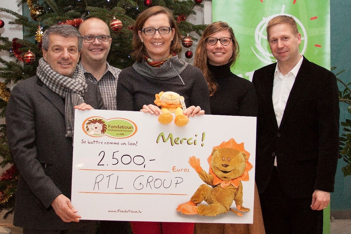 Pour son traditionnel don de fin d’année, le siège social de RTL Group a choisi en 2014 d’apporter à nouveau son soutien à la ‘Fondatioun Kriibskrank Kanner’ afin de venir en aide aux familles d’enfants atteints d’un cancer ou d’une maladie grave au Luxembourg.