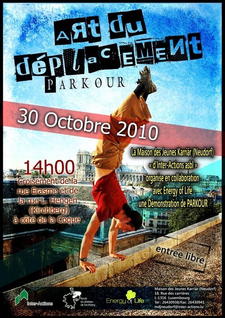 La démonstration de Yamakasi a lieu samedi à 14 heures et durera entre 20 et 30 minutes. Le rendez-vous est donné samedi à 14 heures au croisement de la rue Erasme et de la rue L. Hengen à côté de la Coque.