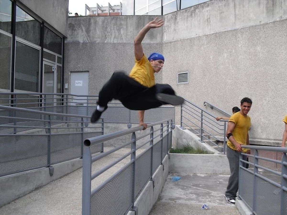 Le Parkour-Art du déplacement est une pratique mise en lumière par les Yamakasi (voir film de Luc Besson), dont le but philosophique est d’utiliser les trois mouvements inhérents à tout être humain: courir, grimper, sauter. Le but est d'utiliser sa technique pour surmonter les obstacles qui se présentent lors de la pratique. Au début, on pourrait voir cela comme une pratique «sportive», qui veut imaginer son environnement comme un terrain de jeu. L’obstacle à surmonter va être tantôt un mur, tantôt un trou au sol, tantôt des escaliers: en résumé, toute plateforme urbaine ou tout milieu naturel.
