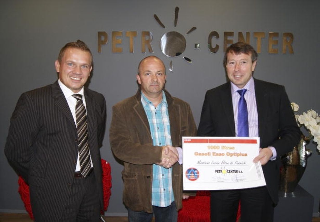 Les nombreux participants avaient dû répondre à une question sur le gasoil de chauffage Optiplus, mazout à la pointe du progrès de la marque Esso. L'administrateur délégué Paul Kaiser et Steve Omes, «sales and office manager», ont remis son prix à l'heureux gagnant, Lucien Elsen, de Koerich, sous forme d'un chèque-cadeau. Un lot bienvenu pour affronter l'hiver. (C.)