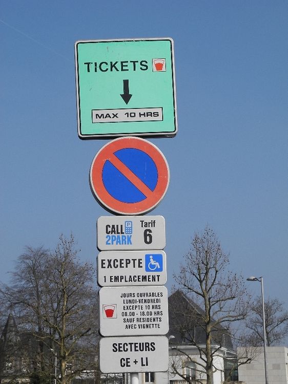 - Hier kann man Parkscheine erwerben die maximal zehn Stunden gültig sind. (1. Schild)