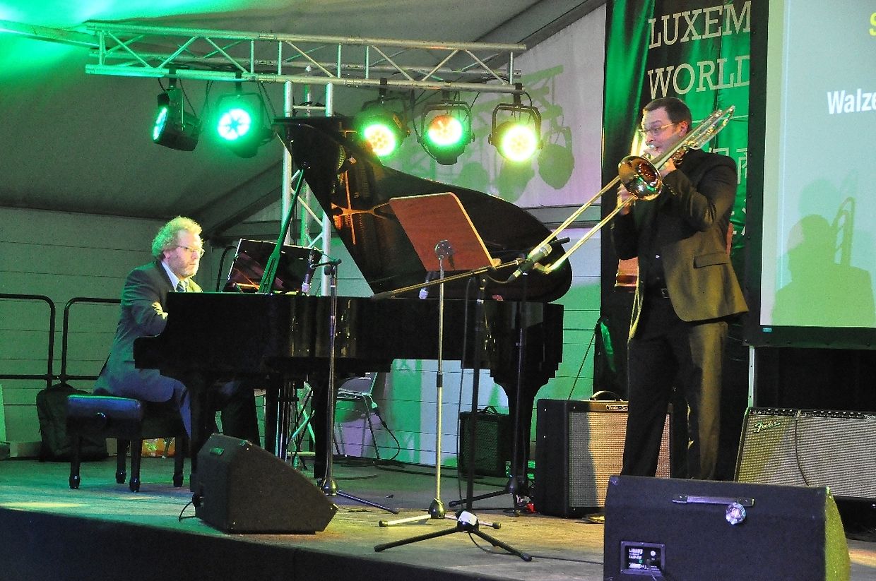 E Virtuos op sengem Instrument, wat soll en soss soen! Zum Schluss vun sengem Optrett krut hien nach en Standing Ovatioun.