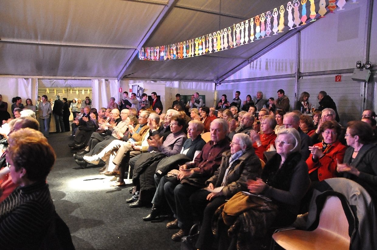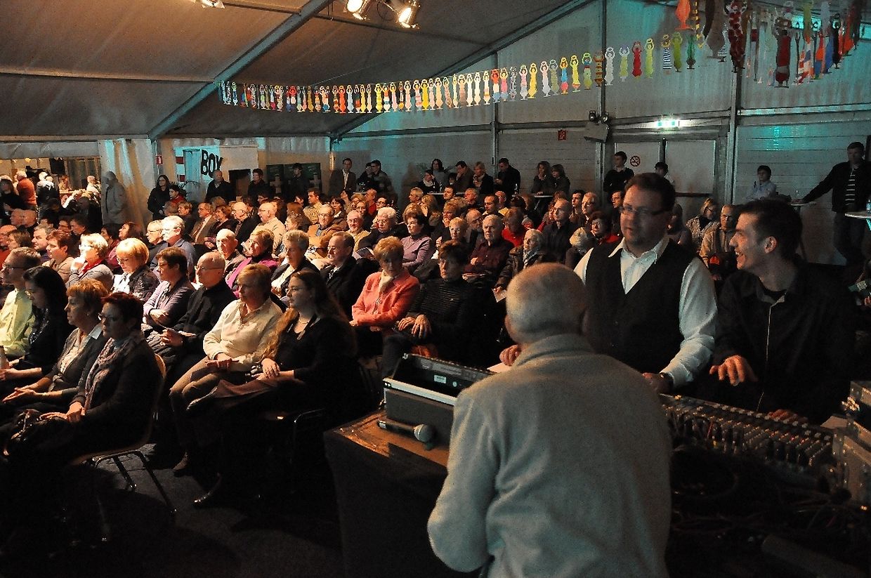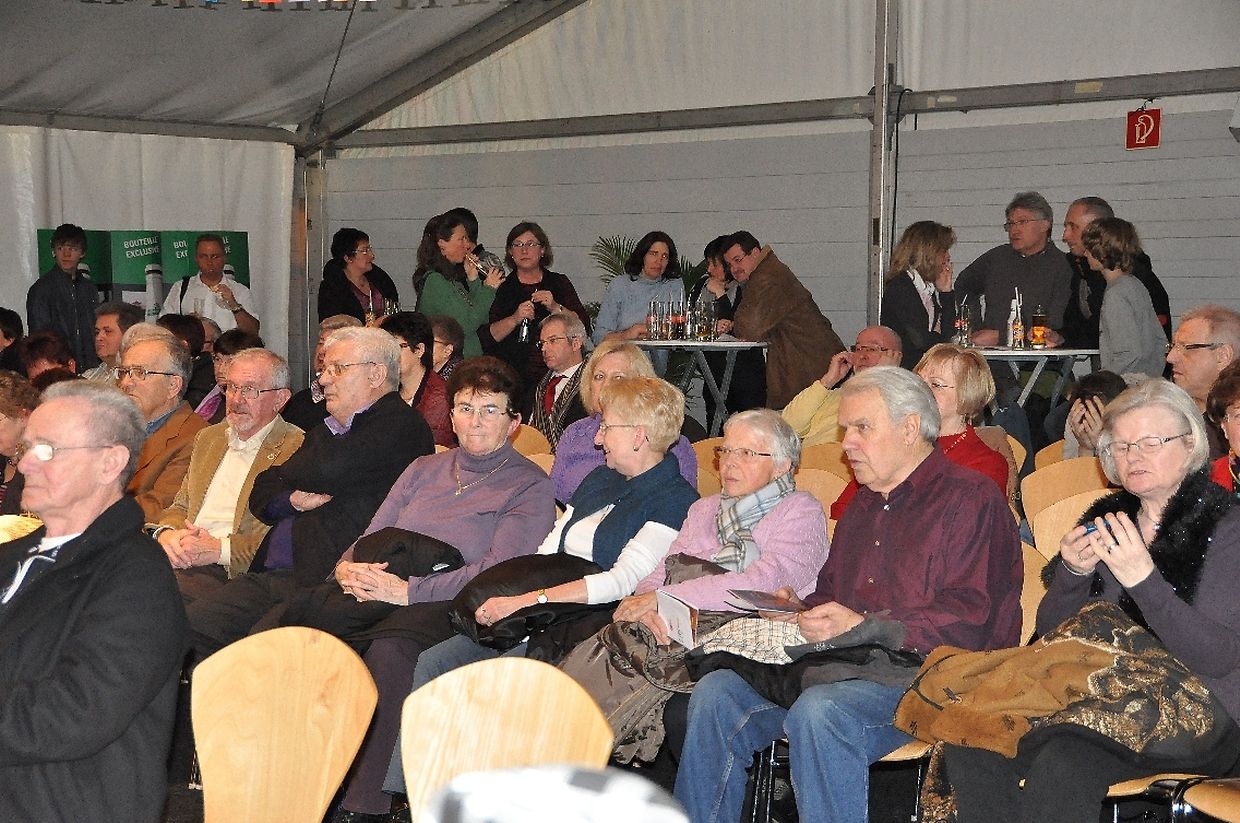 De Sall war bis an die lescht Rei besat,an d'Leit hun net mat Applaus gespuert. Zum Schluss koum d'Iwerraschung an der Persoun vum André Mergenthaler, den d'Leit mat senger Musik ze begeschteren woust.