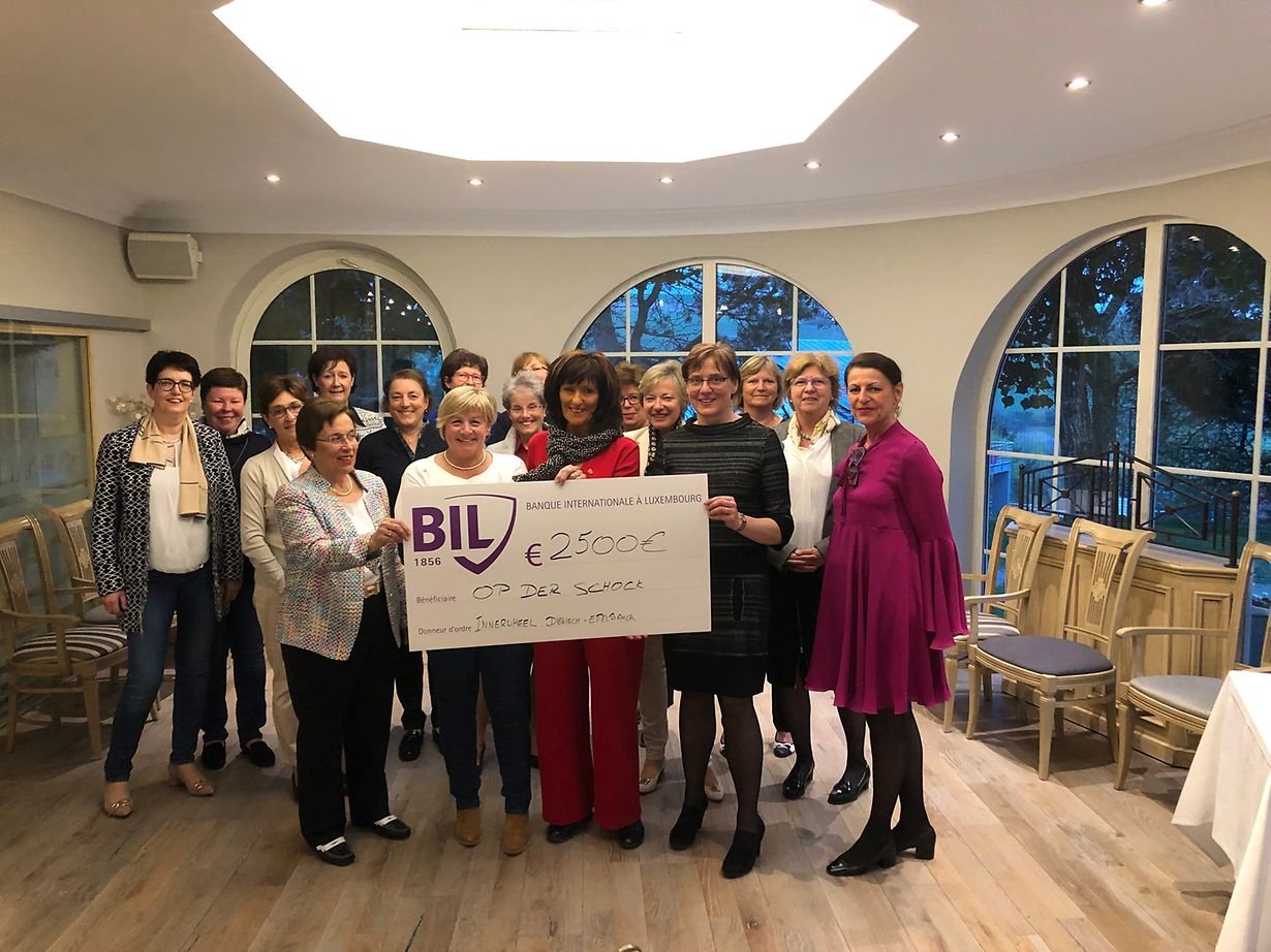D'Presidentin vum Inner Wheel, Christiane Koeune an hir Memberen, haten d'Fréd e Chèque vun 2500,00 ze iwerreeschen un d'Mme Nicole Fisch vun der asbl Op der Schock.