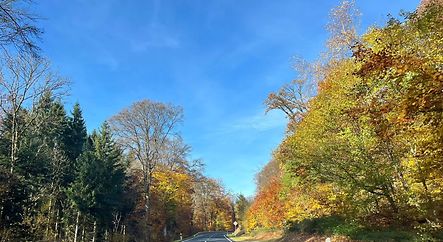 Farbige Landstrassen durch den Herbstwald im Ösling.