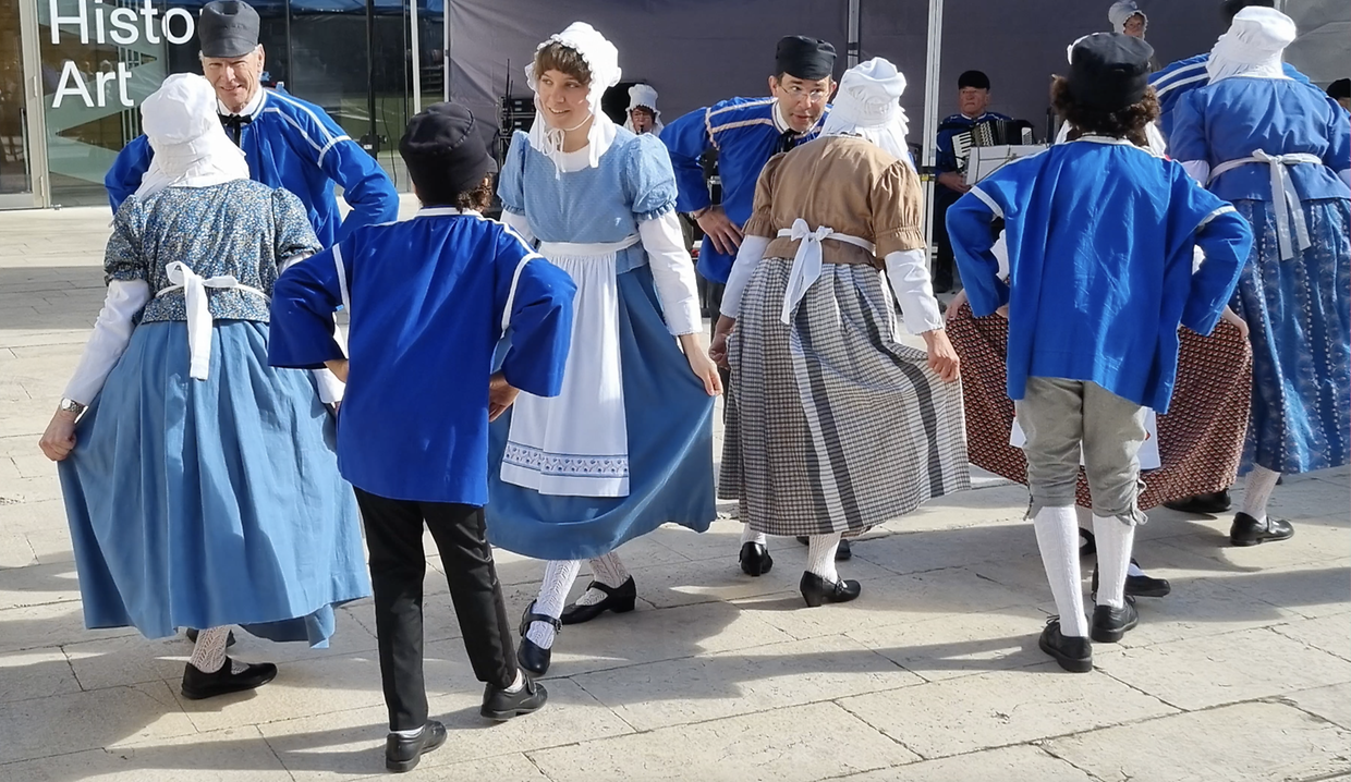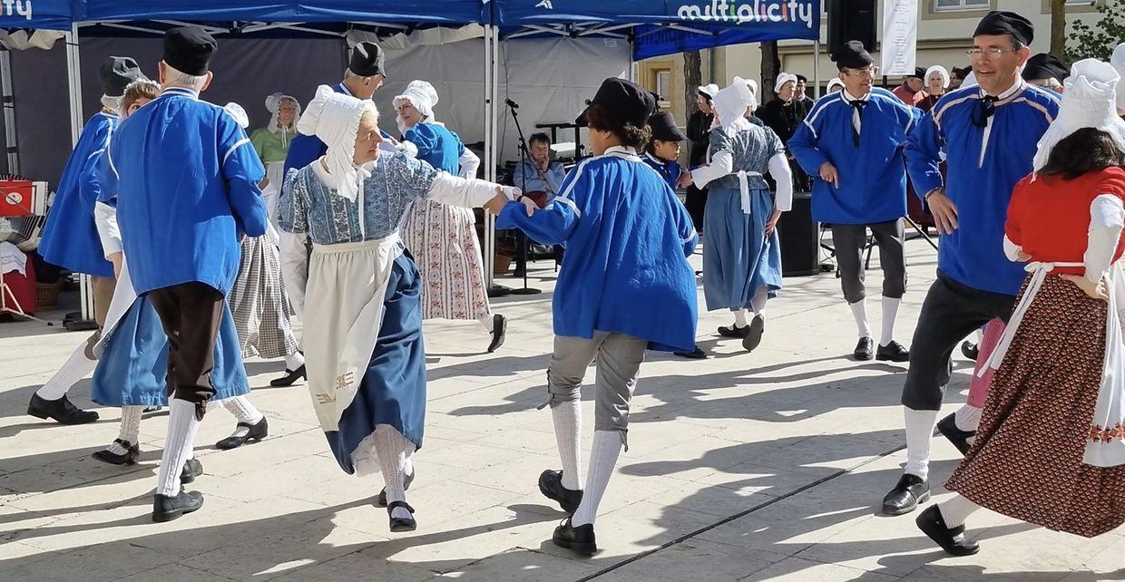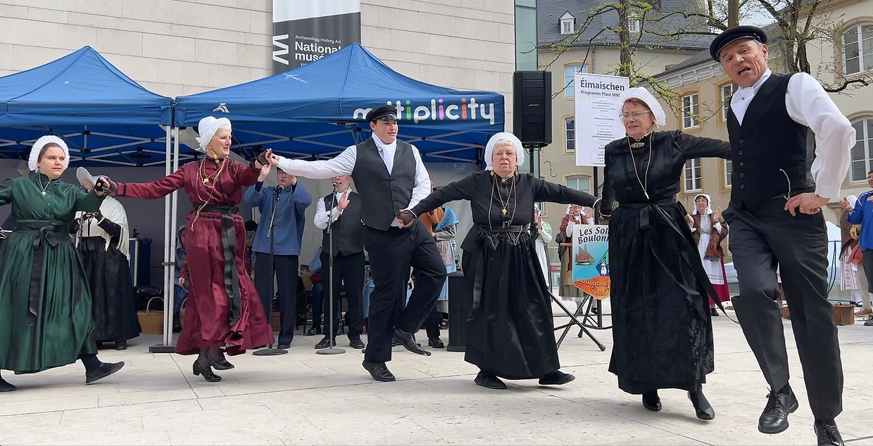 Folklorgruppen ënnerwee Am September 2024 waren di zwou Lëtzebuerger Folklordanzgruppen Uucht- La Veillée aus der Stad a La Ronde vu Beetebuerg zu Boulogne-sur-Mer op der Fête de la Beurière. Invitéiert ware mir vum Grupp « Les Soleils Boulonnais », déi zanter 50 Joër ënnert der Leedung vum dynamischen Stéphane Thiriat all Joër am Hierscht dëst Fest organiséieren. Während 2 Deeg konnte mir eis vum Savoir -Faire a vum Savoir-Vivre vun de Leit am Pas de Calais iwwerzeegen. Gläich zur Begréissung gouf et Kippers, e gereecherten Hierk fir deen d’Boulonnais’e grad wi hien (den Hierk) an hir englisch Noperen déi Säit vum Ärmelkanal duerch d’Feier ginn. Och di schéi mëttelalterlech Alstad huet äis begeeschtert. Den absolute Highlight war awer den Aquarium Nausicaa, dee gréissten an Europa, an deem mir net aus dem Staunen iwwer di schéi Waasserdéieren erauskoumen. Mir waren un éischter Stell ugereesst fir eis Kostümer, eis Melodien an Dänz ze weisen. De Chibberli, de Baaschtnecher Konterdanz an di séier Maclotte konnten d’Leit beim Mier begeeschteren. Et war dunn nëmmen normal, dass mir eis nei Kolleegen, déi di selwecht Passioun fir Konscht an Traditioun deelen, geschwë wollten erëm gesinn. Mat der finanzieller Ënnerstëtzung vun der Stad Lëtzebuerg koume fir den Ouschterweekend 20 dynamisch Dänzer/innen a Sänger/innen op Besuch. Mir hunn hinnen du gläich ënner engem wonnerschéine, bloen Himmel eis Alstad mat hire flotte Vue’e gewiissen. Deen aneren Dag Moies huet eng Guidin vum LCTO d’Geheimnisser vum Kierchbierg a vum Quartier Gare gelëfft. Mëttes stoung dunn en éischten Optrëtt op der Plëss um Programm. An de wiertësse Kleeder hunn d’Matelotten an d’Matelot’en hir lokal Dänz virgefouert. Si gouwen zum Deel begleet vun traditionnelle Lidder am « patois local ». Owes hu mir zesummen an der Jugendherberg am Pafendall mat engem Buffet, e puer Pättercher, vill Musék an Danz gefeiert. Ouschterméinden op der Éimäischen stoung de Plat de Résistance um Programm. Um Parvis vum Konschtmusée um Fëschmaart koumen d’ »Soleils Boulonnais » Moies a Mëttes an den Asaz. Si haten den houbeschte Fuedem un an hunn ënnert de Kläng vun der Gei an der Klarinett hir konschtvoll Schrëtt zu flotte Figure forméiert. «Menuet», «Contredanse» an «Cassez le verre» hu sech ofgewiesselt mat nostalgische Lidder wi «Vos blanches coiffures», wou e Lueflidd op d’traditionnel « Coiffe » vun de Frae gesong gouf. D’Getrillers vun de Péckvillercher huet sech mam begeeschterten « An d’Hänn Klappe » vum Publikum vermëscht. Dës Éimäischen 2025 - eemol anescht- ass ganz gut ukomm. Wéi sou dacks ass d’Zäit verflunn a schon huet et «Äddi, bis geschwënn» an «Au revoir, à bientôt» geheescht. Mir hoffen äis geschwënn bei Musék, Danz a Gesank erëm ze gesinn.